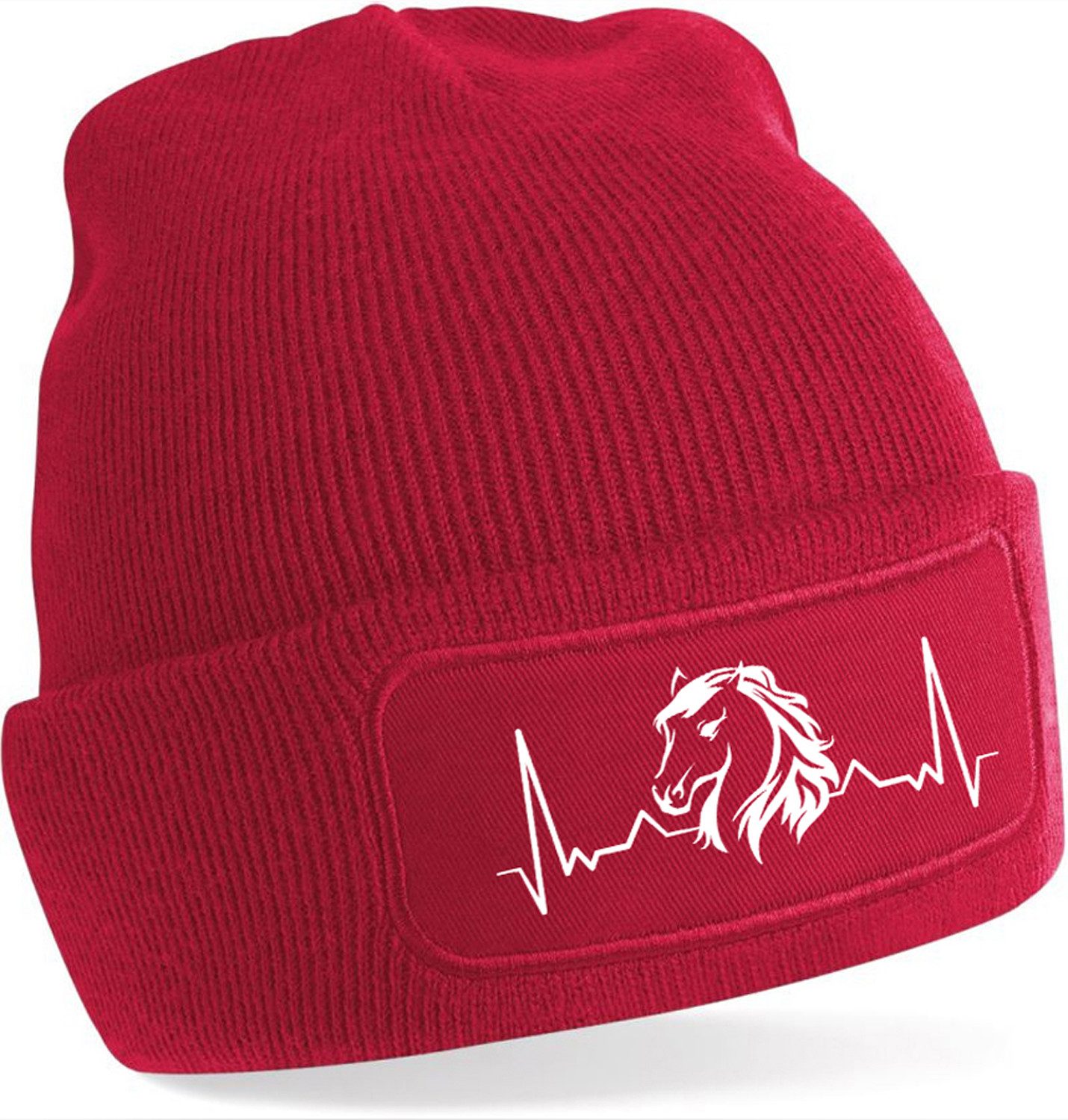 Einzigartige Mütze mit Pferdeprofil und Herzschlaglinie – kombiniert Wärme, Design und Komfort für Herren, Damen sowie Jungen und Mädchen gleichermaßen.