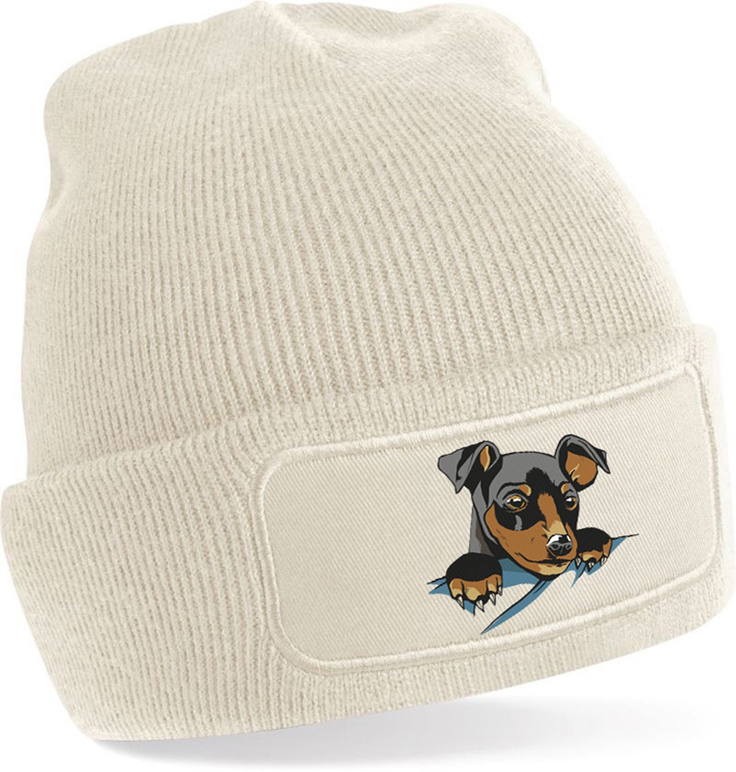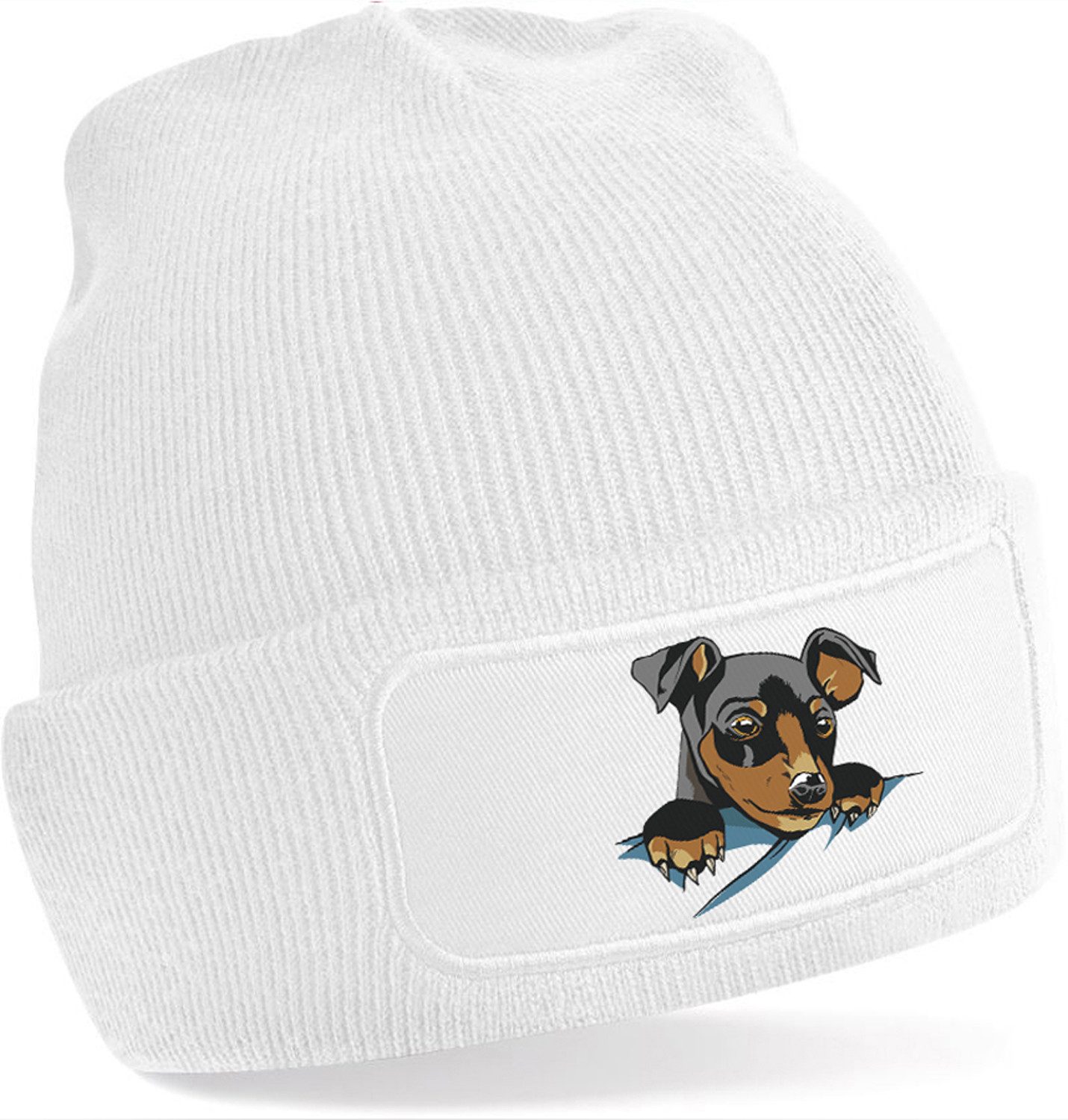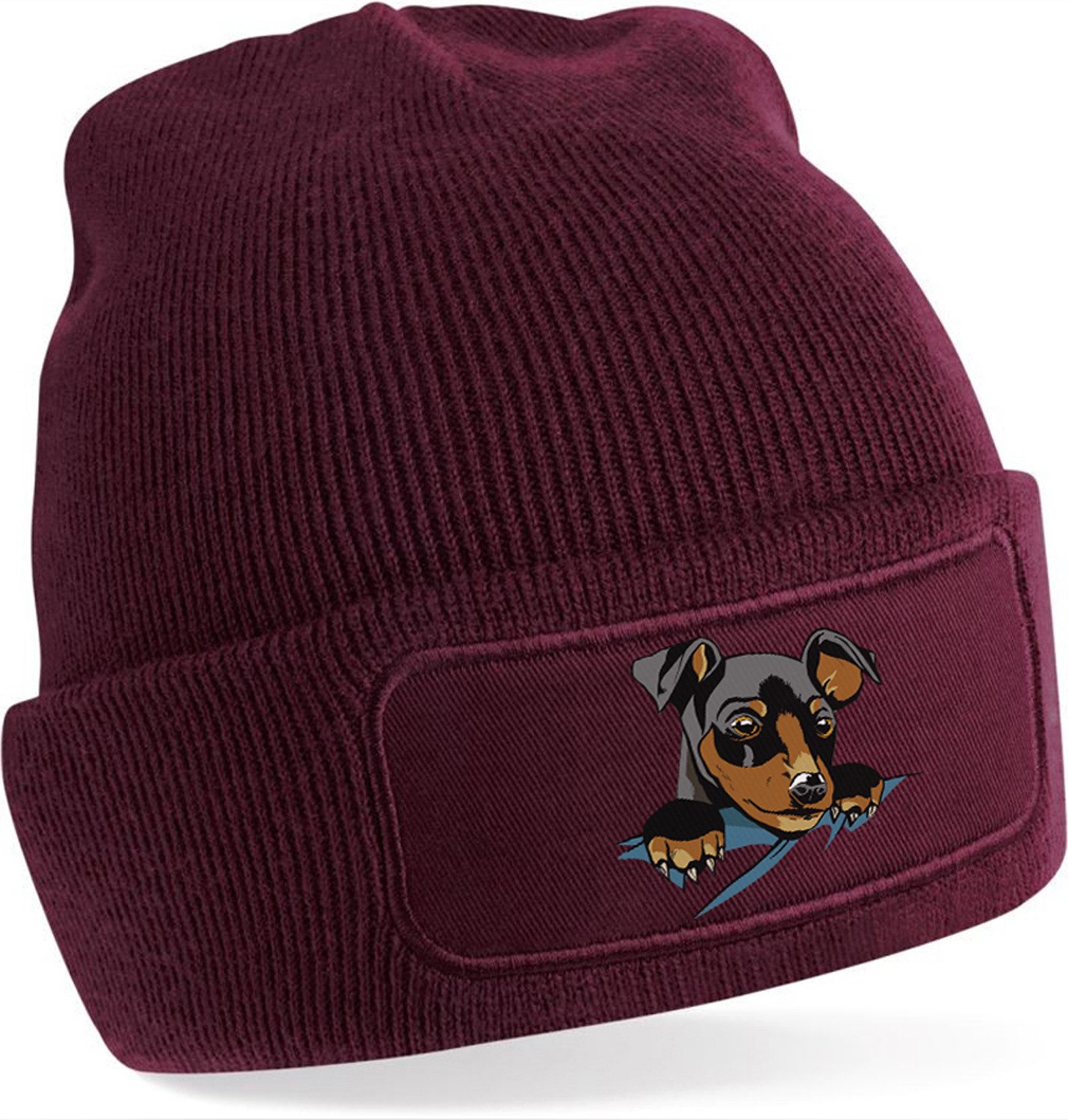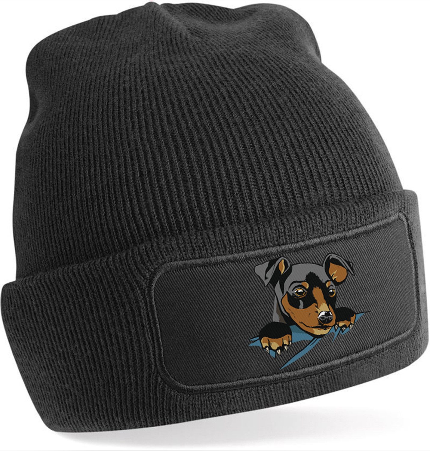 Stilvolle Strickmütze für Junge, Mädchen, Mann und Frau: Doppelstrick, Baumwolltwill-Patch und Hunde-Motiv vereinen Komfort, Wärme und modernes Design.