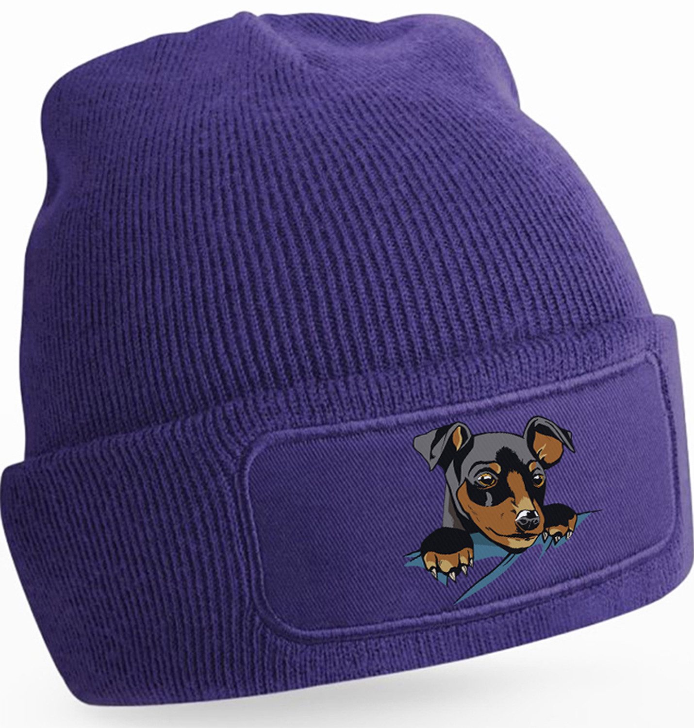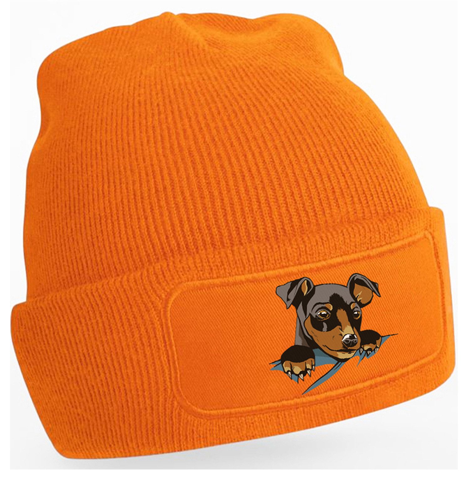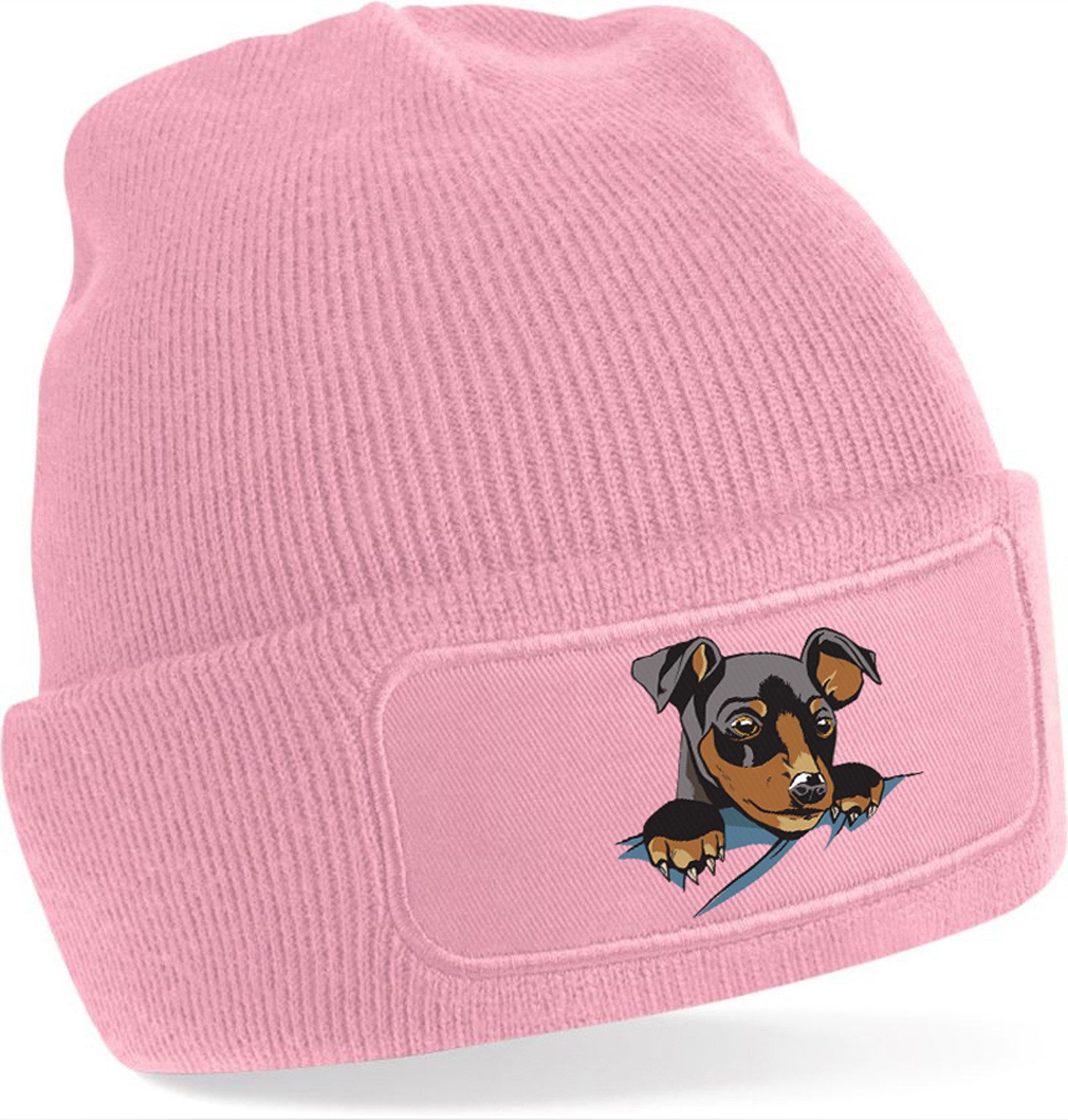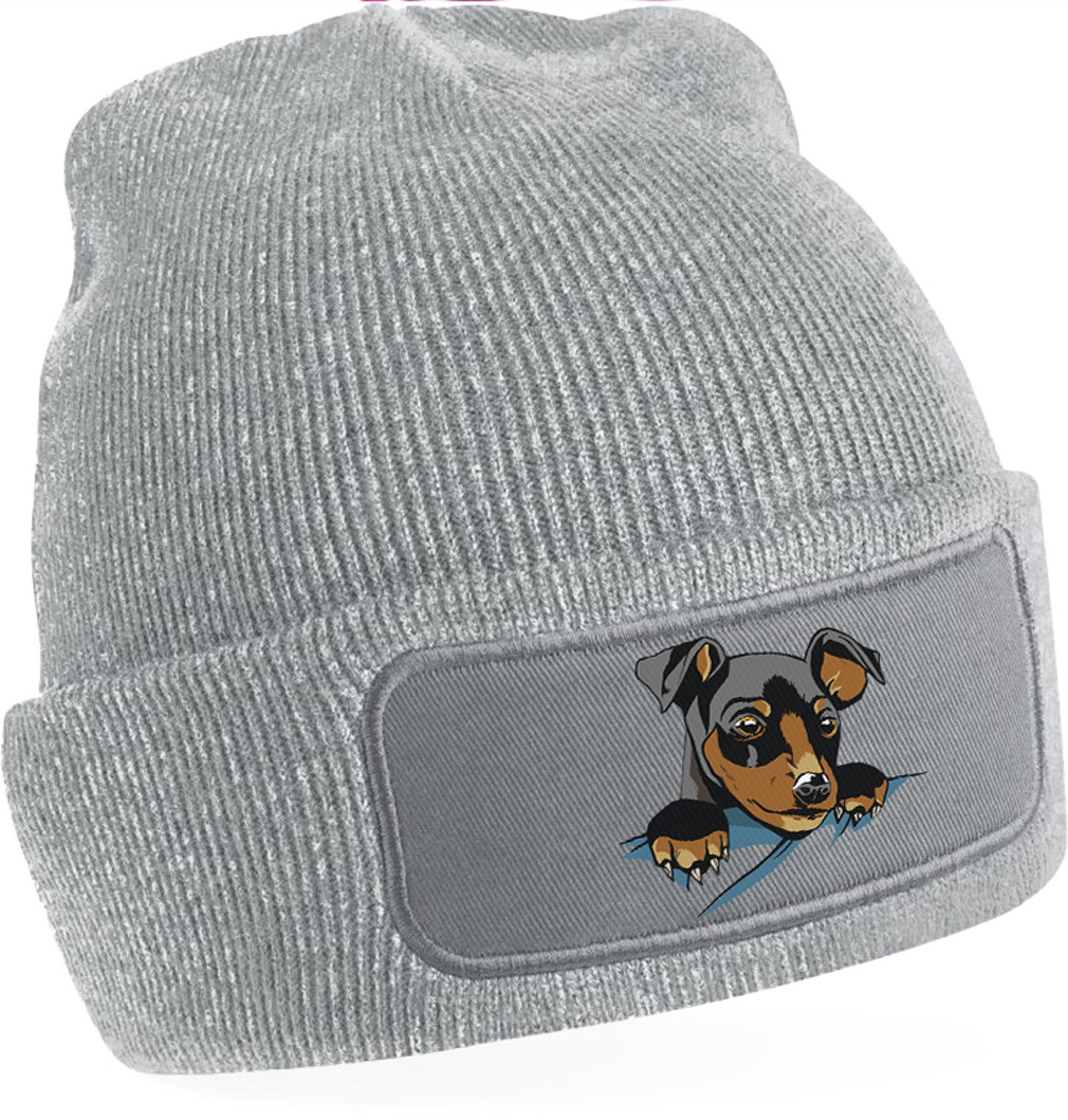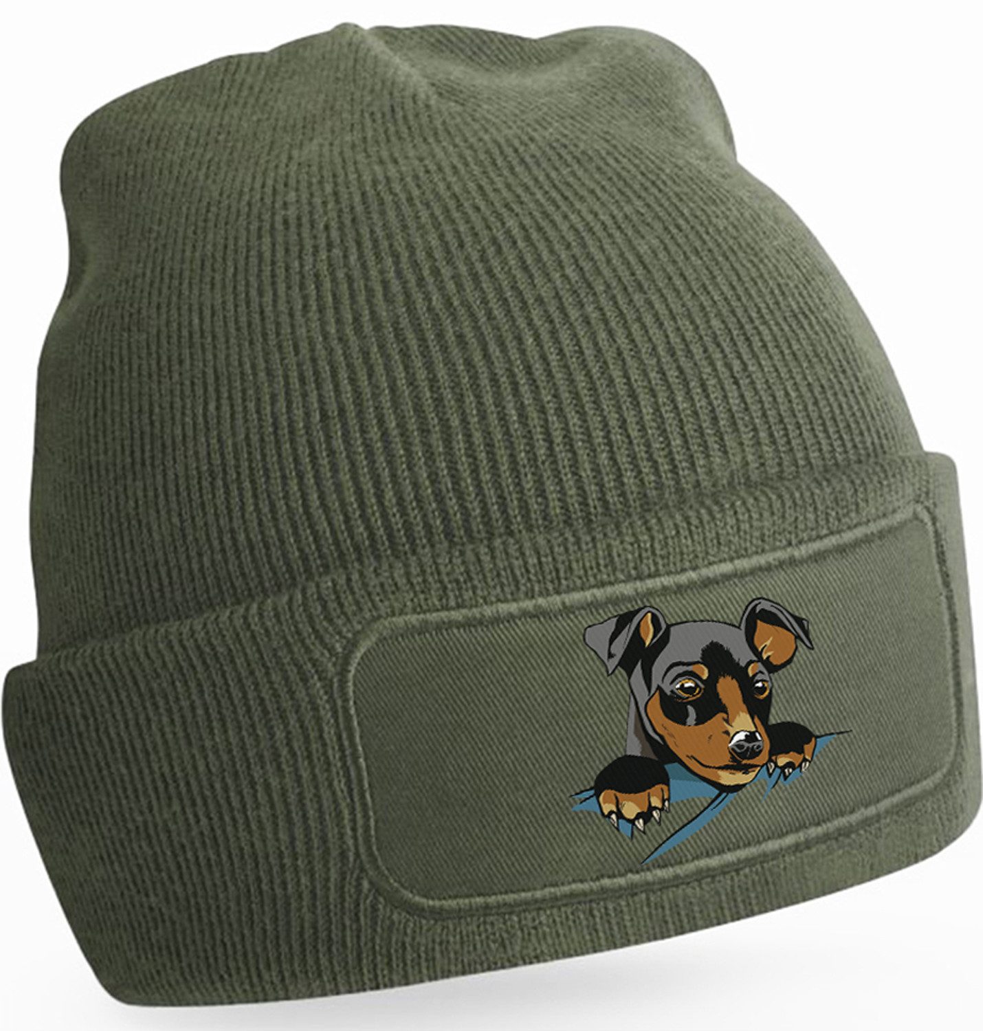 Stilvolle Strickmütze für Junge, Mädchen, Mann und Frau: Doppelstrick, Baumwolltwill-Patch und Hunde-Motiv vereinen Komfort, Wärme und modernes Design.