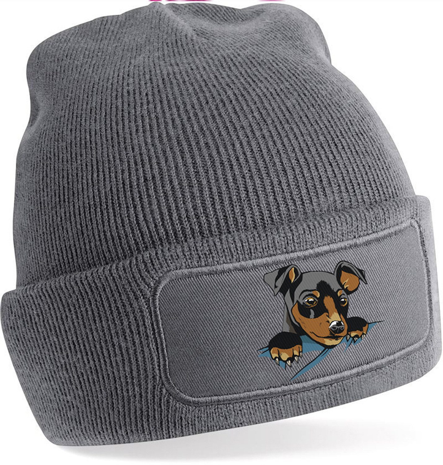 Funktional und modisch: Diese Wintermütze mit grober Optik, treuem Hunde-Motiv und breitem Umschlag ist vielseitig tragbar und macht jeden Winterlook komplett.