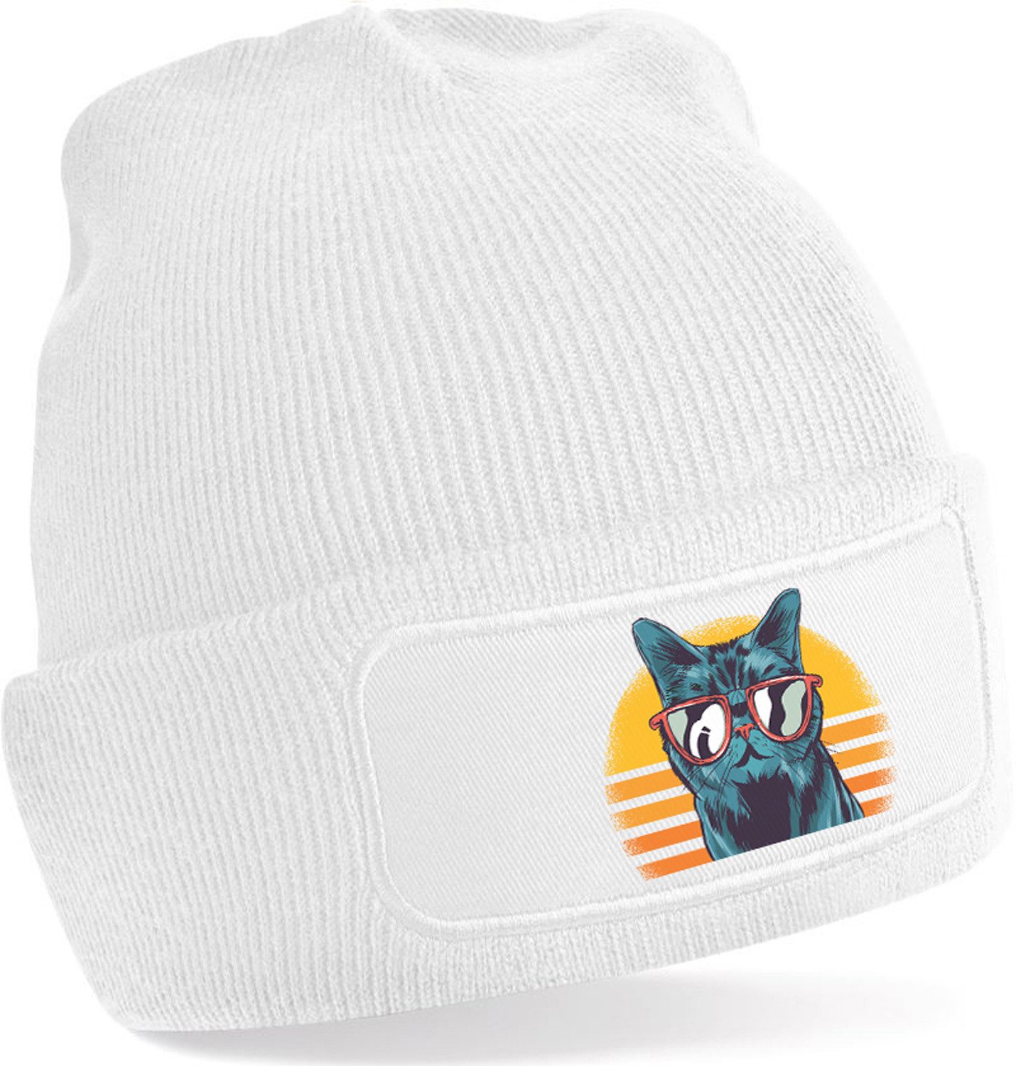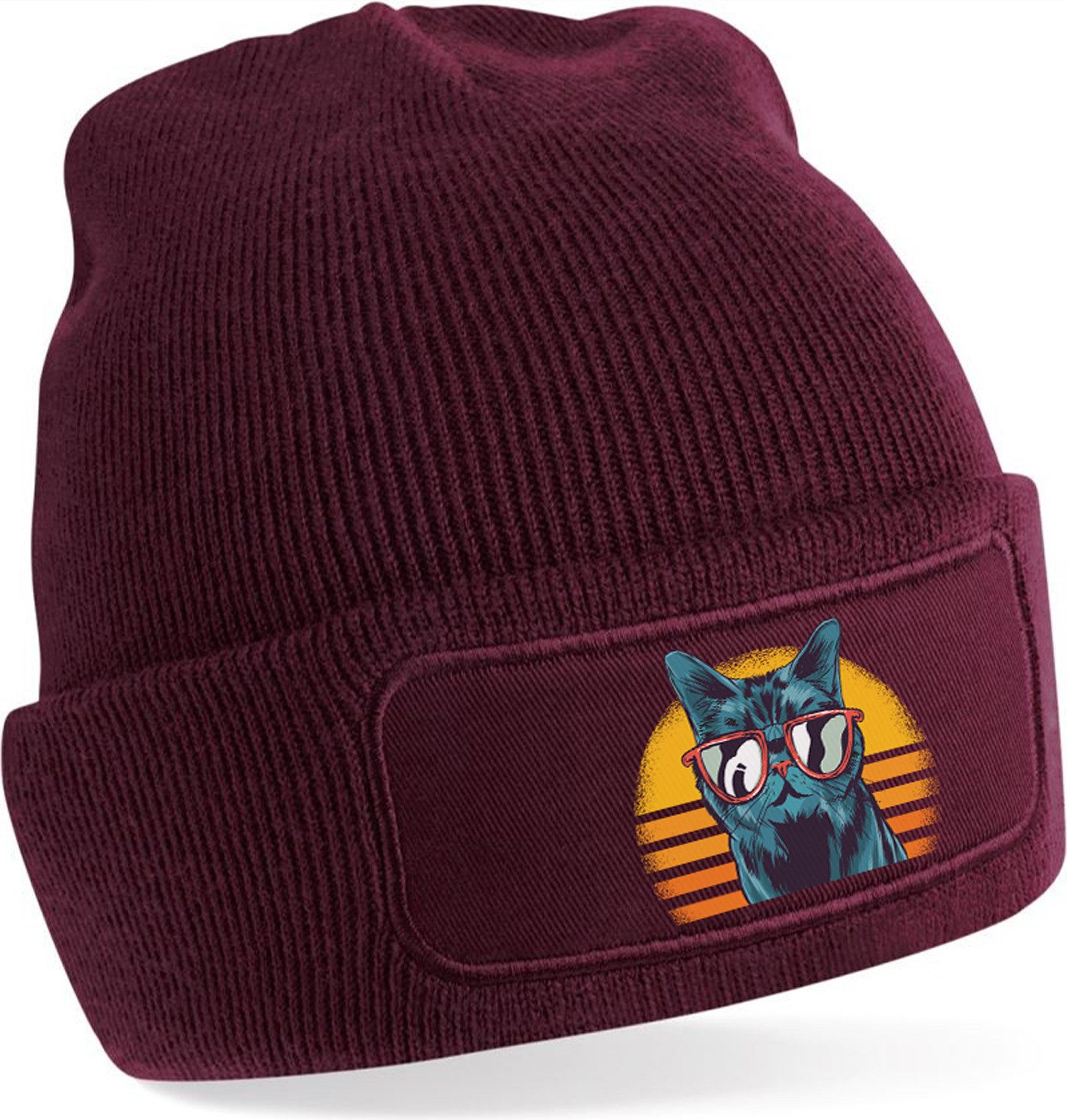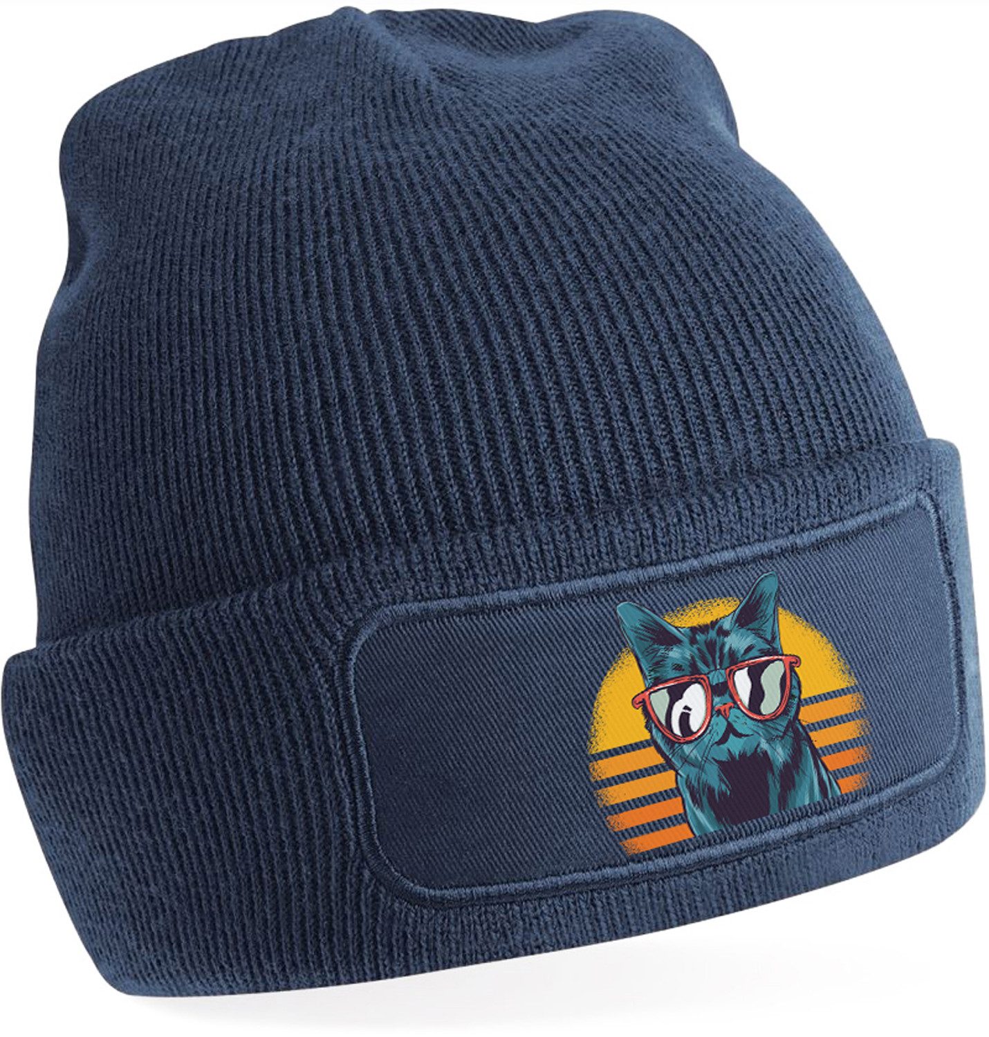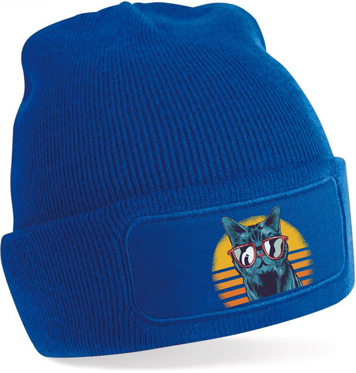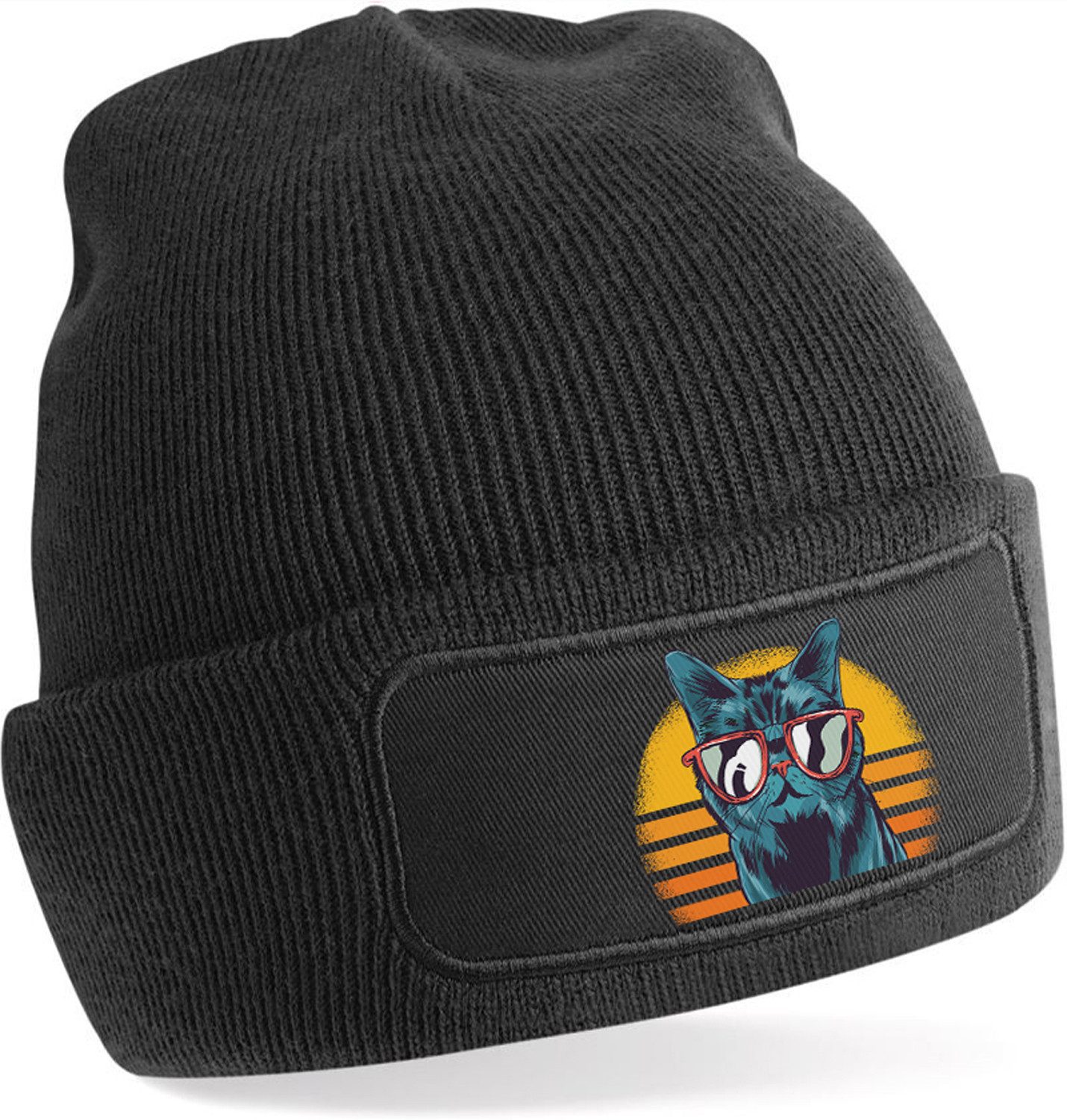 Stylische Strickmütze mit cool bedrucktem Katzenmotiv und lässiger Sonnenbrille – perfekt als modisches Statement für Männer, Frauen, Jungen und Mädchen.