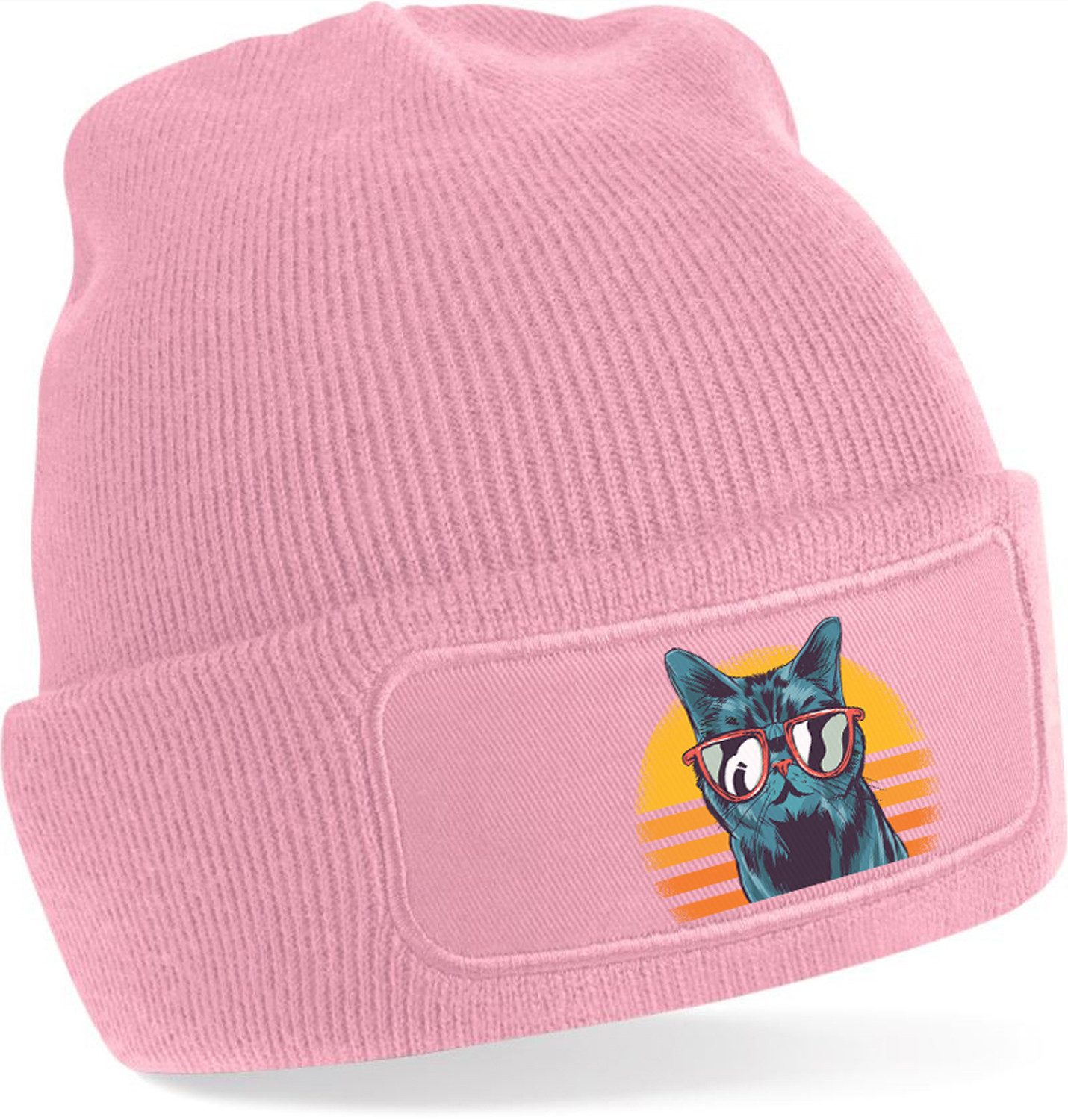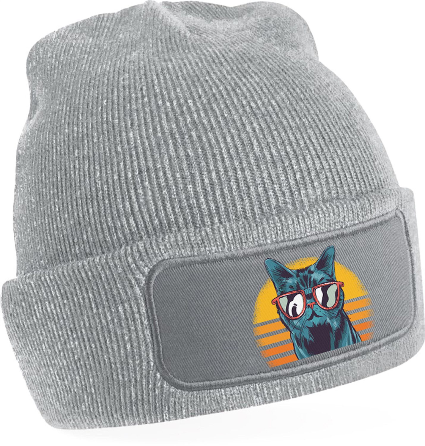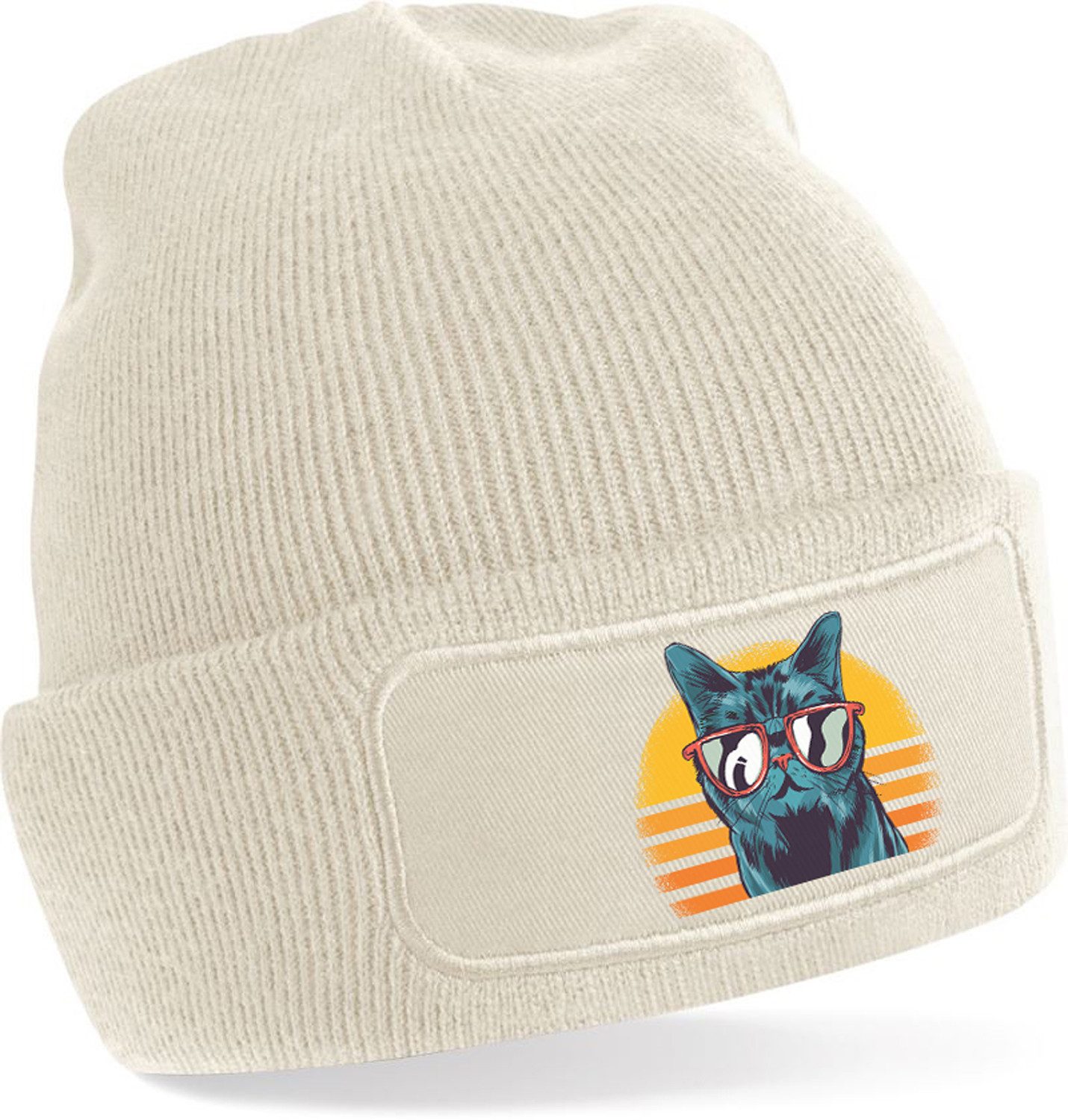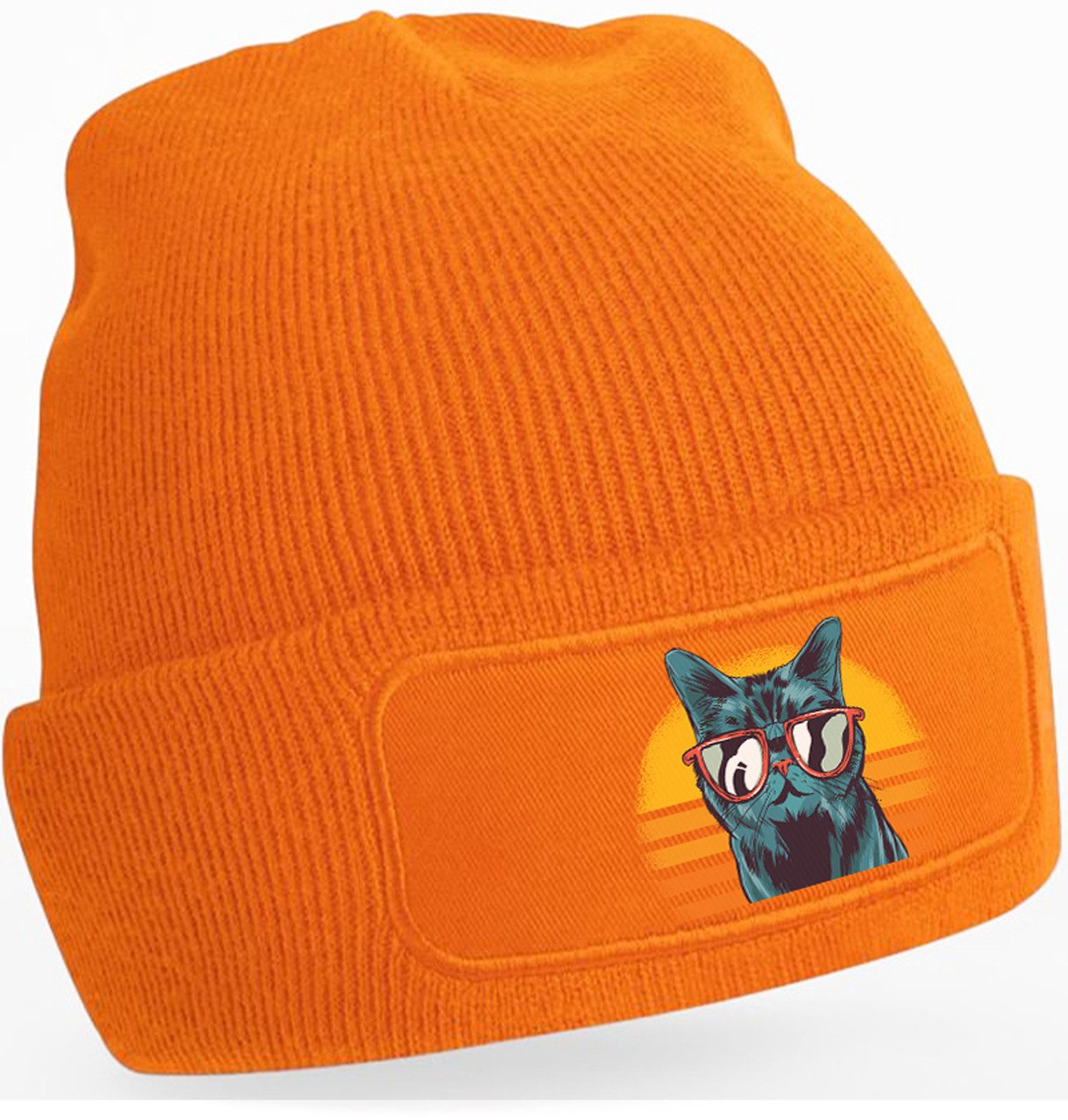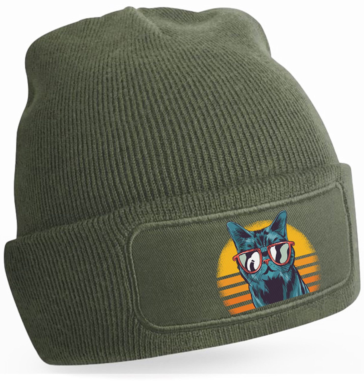 Stylische Strickmütze mit cool bedrucktem Katzenmotiv und lässiger Sonnenbrille – perfekt als modisches Statement für Männer, Frauen, Jungen und Mädchen.