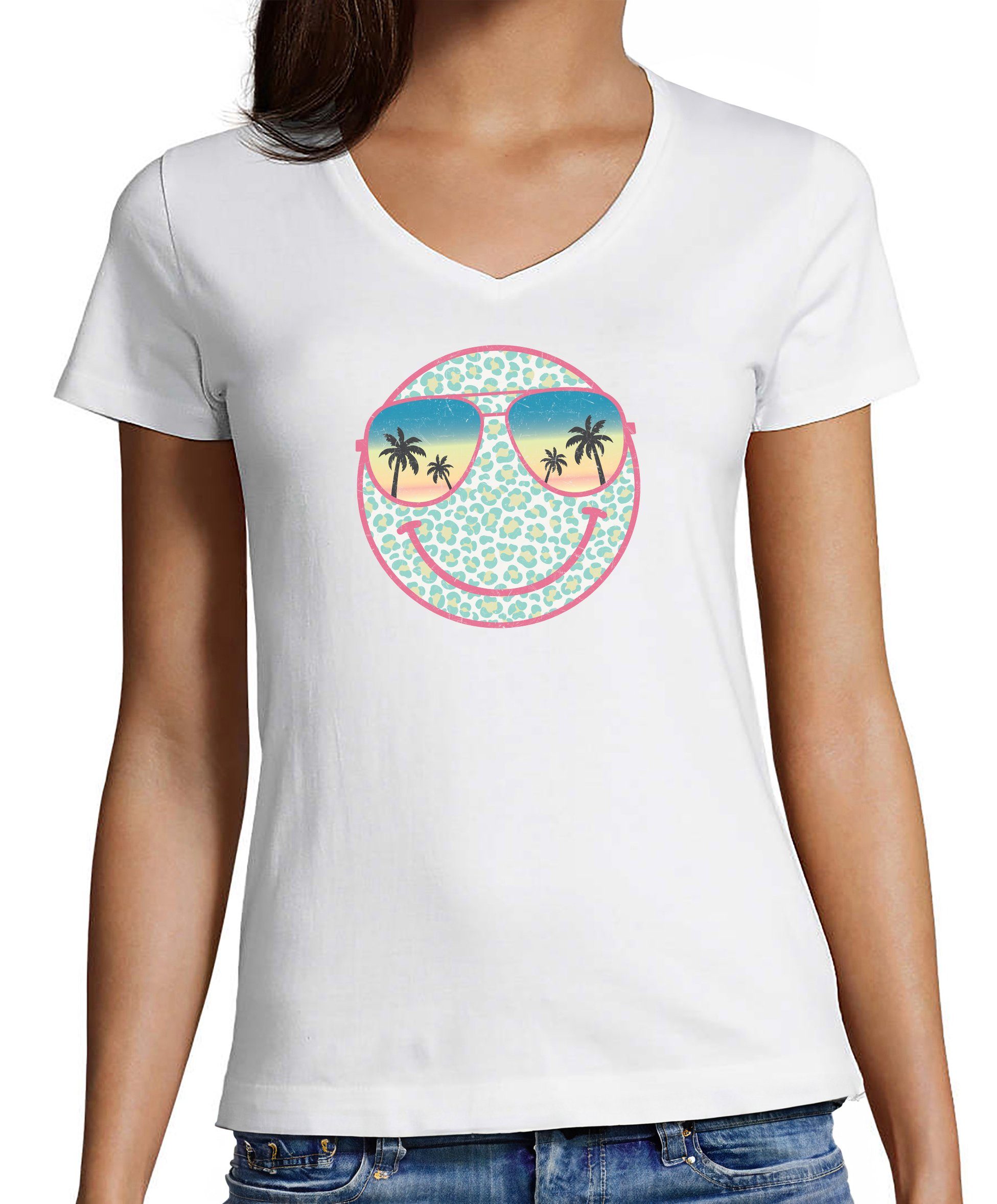 Stilvoll und selbstbewusst: Bedrucktes Damen T-Shirt mit einzigartigem Aufdruck - Lächelnder Sommer Smiley mit Brille Dieses wunderschöne bedruckte Damen T-Shirt ist ein absolutes Must-Have für Frauen, die ihren persönlichen Stil zum Ausdruck bringen möchten. Mit seinem einzigartigen Aufdruck ist es ein Blickfang, der sofort Aufmerksamkeit erregt und Ihr Outfit aufwertet. Das T-Shirt besteht aus hochwertiger Baumwolle, die nicht nur angenehm auf der Haut liegt, sondern auch für hervorragenden Tragekomfort sorgt. Es wurde sorgfältig verarbeitet und bietet eine optimale Passform, die Ihre weiblichen Kurven schmeichelt. Der Aufdruck auf dem T-Shirt ist das Highlight des Designs und macht dieses T-Shirt zu einem einzigartigen Kleidungsstück, das Sie von der Masse abhebt. Das herausragende Merkmal dieses T-Shirts ist zweifellos der einzigartige Aufdruck. Das Design wurde mit viel Liebe zum Detail entworfen und fängt die neuesten Modetrends ein. Es verleiht Ihrem Outfit eine gewisse Eleganz und Originalität, die Sie zum Blickfang in jeder Situation macht. Egal, ob Sie es zu einer Jeans, einer Shorts oder einem Rock kombinieren, dieses T-Shirt wird Ihren persönlichen Stil perfekt unterstreichen. Die hohe Qualität des Aufdrucks gewährleistet, dass er auch nach vielen Wäschen seine Farbintensität und Schärfe behält. So können Sie Ihr neues Lieblings-T-Shirt lange Zeit genießen und immer wieder tragen. Entdecken Sie Ihre Individualität und zeigen Sie Ihre Persönlichkeit mit diesem bedruckten Damen T-Shirt. Bereichern Sie Ihre Garderobe um ein einzigartiges Kleidungsstück, das Ihnen Selbstbewusstsein verleiht!