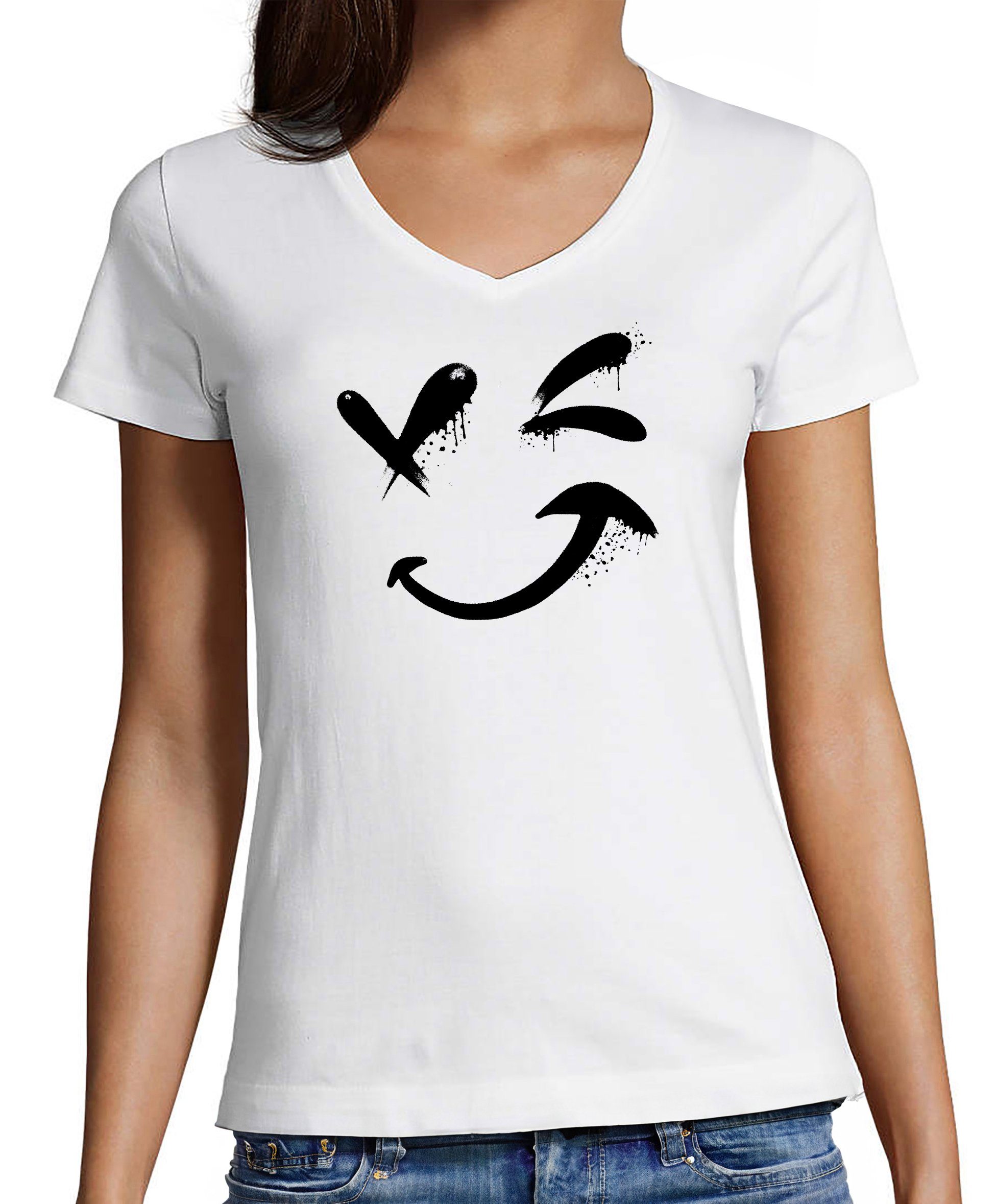 Stilvoll und selbstbewusst: Bedrucktes Damen T-Shirt mit einzigartigem Aufdruck - Zwinkernder Smiley Dieses wunderschöne bedruckte Damen T-Shirt ist ein absolutes Must-Have für Frauen, die ihren persönlichen Stil zum Ausdruck bringen möchten. Mit seinem einzigartigen Aufdruck ist es ein Blickfang, der sofort Aufmerksamkeit erregt und Ihr Outfit aufwertet. Das T-Shirt besteht aus hochwertiger Baumwolle, die nicht nur angenehm auf der Haut liegt, sondern auch für hervorragenden Tragekomfort sorgt. Es wurde sorgfältig verarbeitet und bietet eine optimale Passform, die Ihre weiblichen Kurven schmeichelt. Der Aufdruck auf dem T-Shirt ist das Highlight des Designs und macht dieses T-Shirt zu einem einzigartigen Kleidungsstück, das Sie von der Masse abhebt. Das herausragende Merkmal dieses T-Shirts ist zweifellos der einzigartige Aufdruck. Das Design wurde mit viel Liebe zum Detail entworfen und fängt die neuesten Modetrends ein. Es verleiht Ihrem Outfit eine gewisse Eleganz und Originalität, die Sie zum Blickfang in jeder Situation macht. Egal, ob Sie es zu einer Jeans, einer Shorts oder einem Rock kombinieren, dieses T-Shirt wird Ihren persönlichen Stil perfekt unterstreichen. Die hohe Qualität des Aufdrucks gewährleistet, dass er auch nach vielen Wäschen seine Farbintensität und Schärfe behält. So können Sie Ihr neues Lieblings-T-Shirt lange Zeit genießen und immer wieder tragen. Entdecken Sie Ihre Individualität und zeigen Sie Ihre Persönlichkeit mit diesem bedruckten Damen T-Shirt. Bereichern Sie Ihre Garderobe um ein einzigartiges Kleidungsstück, das Ihnen Selbstbewusstsein verleiht!