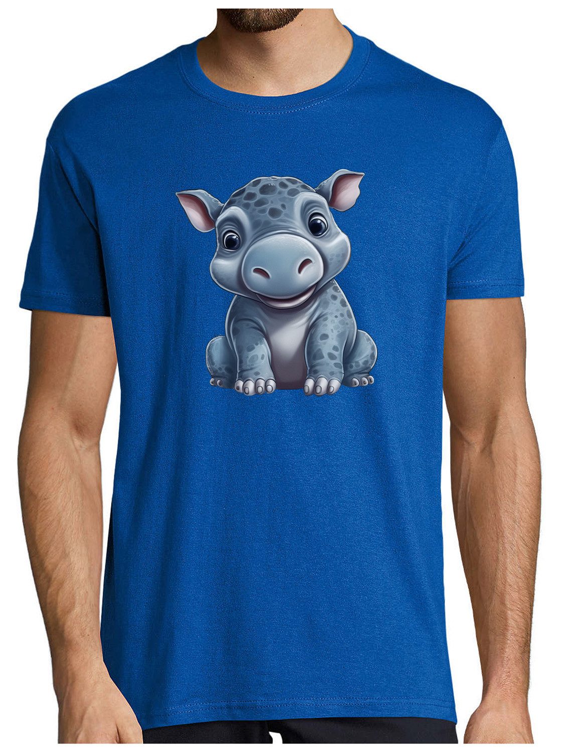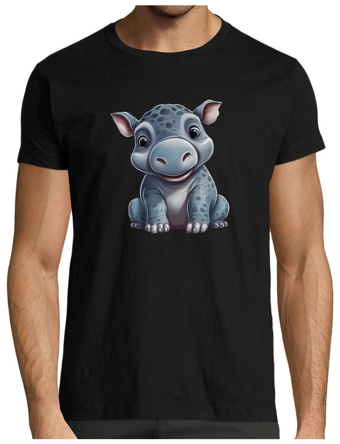Dieses Herren T-Shirt mit einem originellen Cartoon-Nilpferd-Aufdruck kombiniert humorvolles Design und hohen Tragekomfort und ist ideal für Freizeit und sportliche Aktivitäten