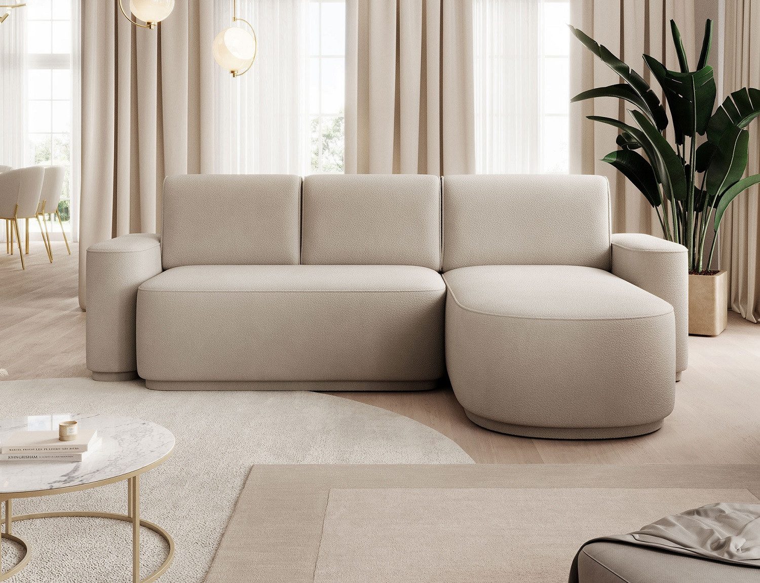 Ob als zentrales Wohnhighlight, gemütlicher Rückzugsort oder funktionaler Gästeschlafplatz – das Ecksofa Orumm passt sich flexibel an Ihre Wohnsituation an. Die harmonische Linienführung, die abgerundete Armlehne und die hochwertige Stoffauswahl verleihen jedem Raum eine moderne und wohnliche Atmosphäre.