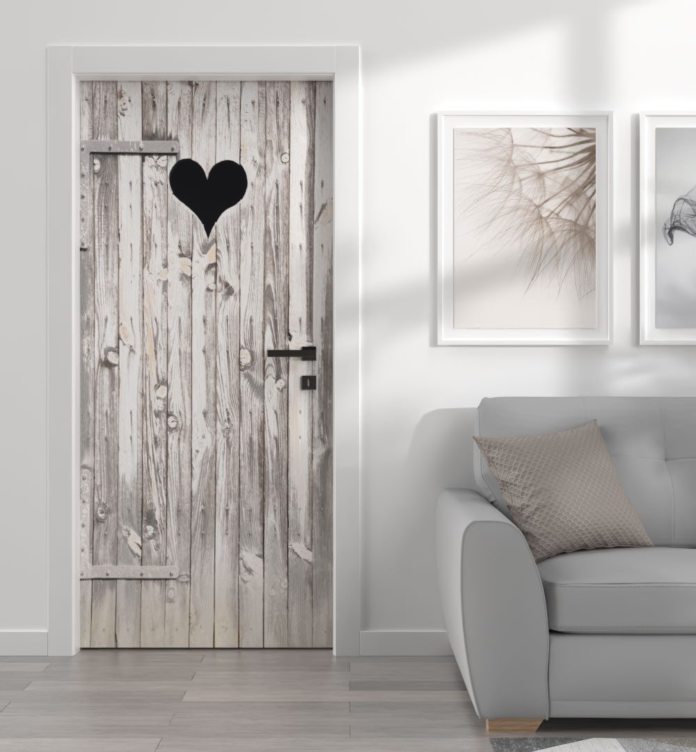 Die Türtapete Klotür Herz links besteht aus einem qualitativ hochwertigen Vinyl Material und wird mittels moderner Digitaldrucktechnologie mit deinem Wunschmotiv bedruckt.
