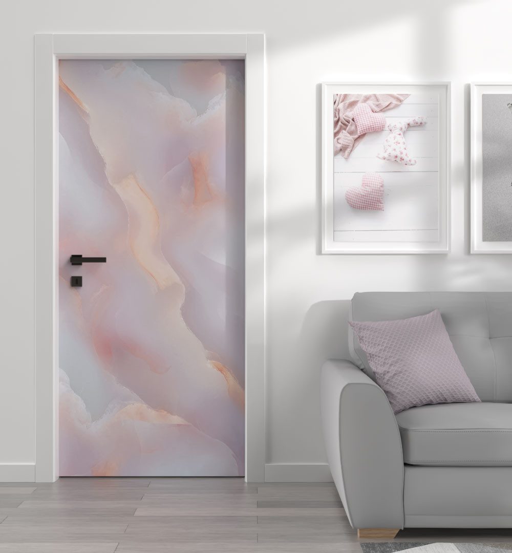 Die Türtapete Marmor rosa besteht aus einem qualitativ hochwertigen Vinyl Material und wird mittels moderner Digitaldrucktechnologie mit deinem Wunschmotiv bedruckt.