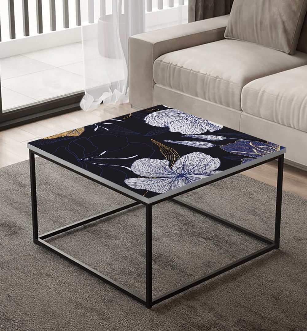 Tischfolie abstrakte Blumen Blätter gold blau Bubblefree selbstklebend ist kompatibel mit IKEA Lacktisch.