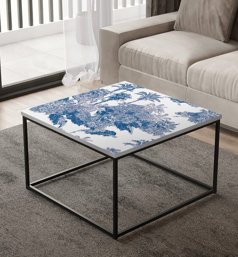 Tischfolie blaues Dschungel Muster Bubblefree selbstklebend ist kompatibel mit IKEA Lacktisch.
