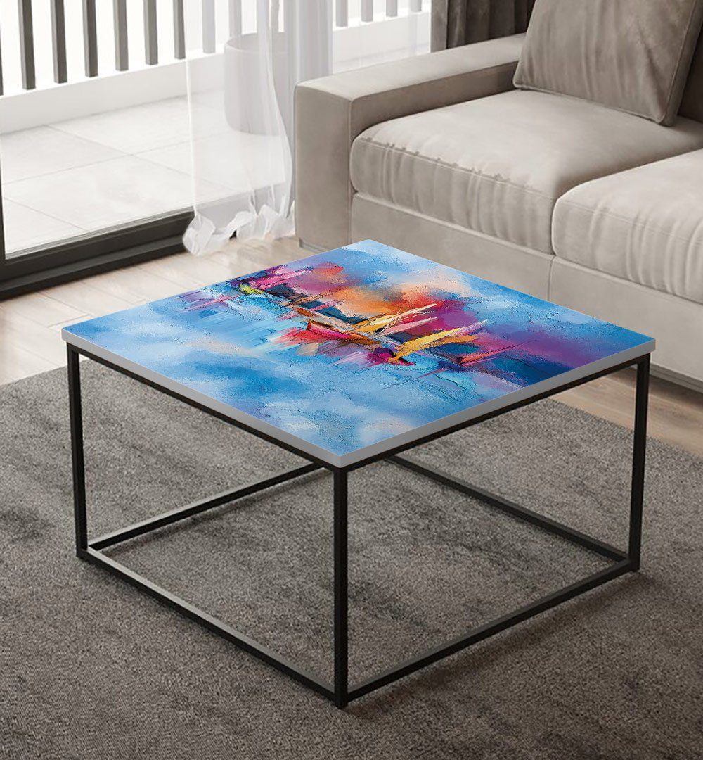 Tischfolie bunt gemalter Hafen mit Wasserfarben Bubblefree selbstklebend ist kompatibel mit IKEA Lacktisch.