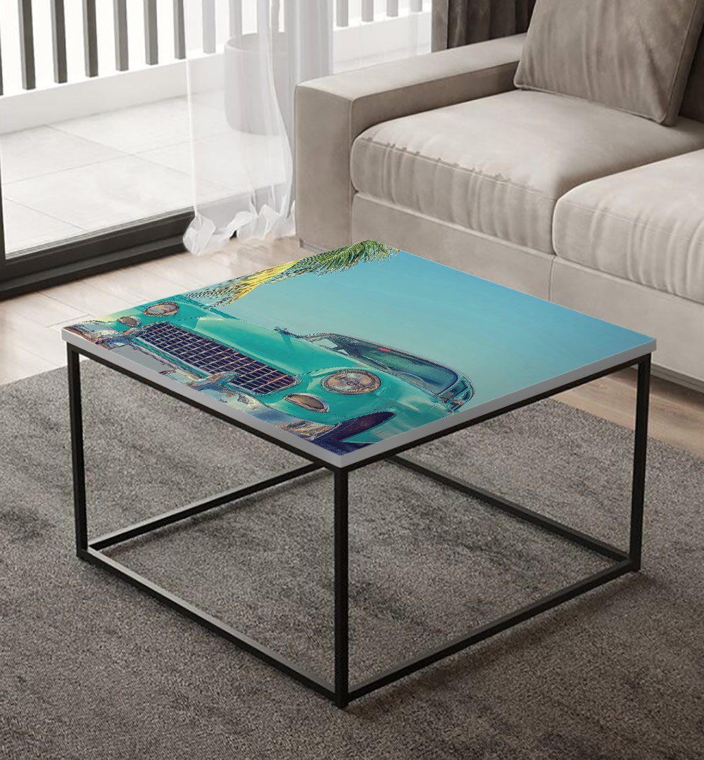 Tischfolie Fahrzeug am Strand unter Palme Bubblefree selbstklebend ist kompatibel mit IKEA Lacktisch.