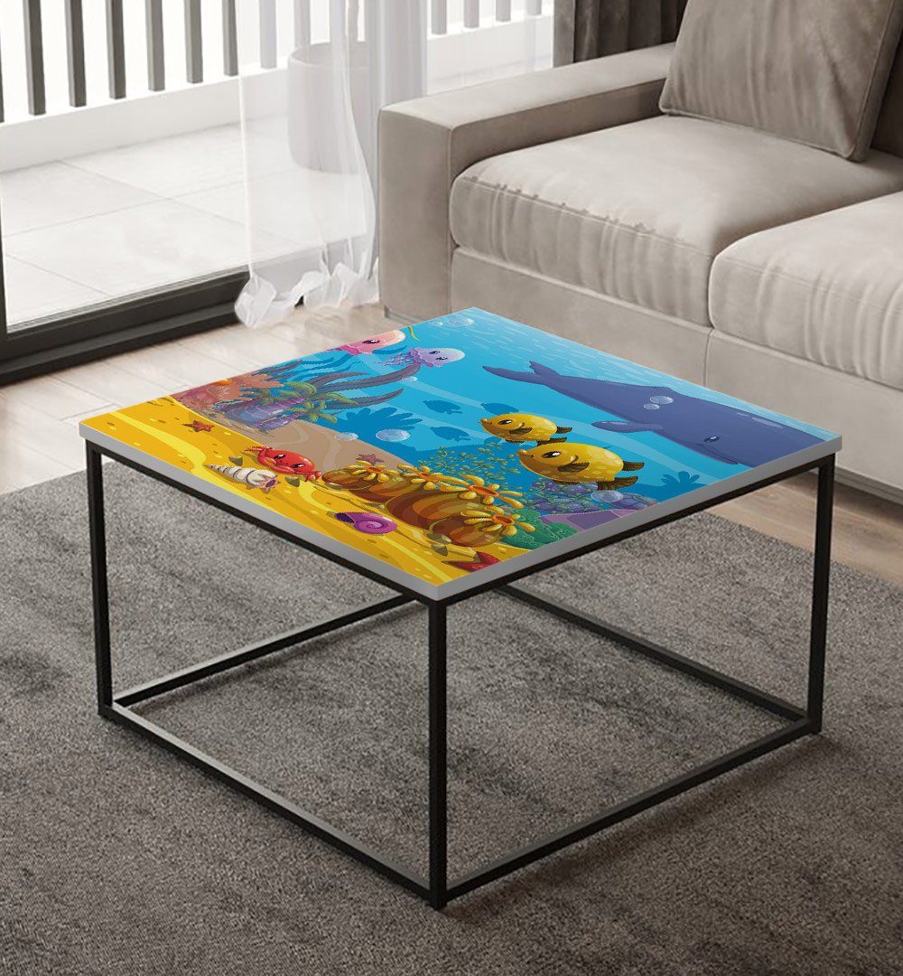 Tischfolie Meeresboden mit vielen Fischen Bubblefree selbstklebend ist kompatibel mit IKEA Lacktisch.