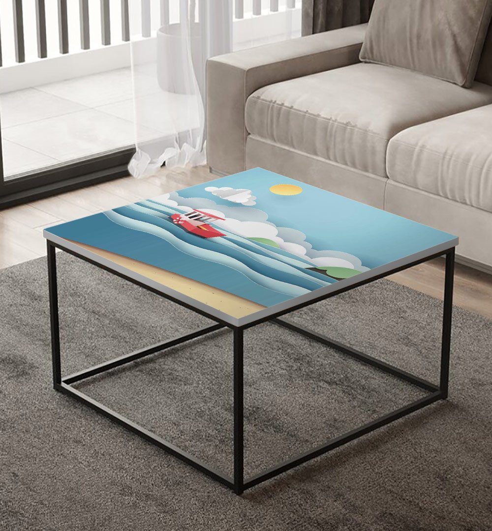 Tischfolie Schiff auf dem Meer mit Leuchtturm Bubblefree selbstklebend ist kompatibel mit IKEA Lacktisch.