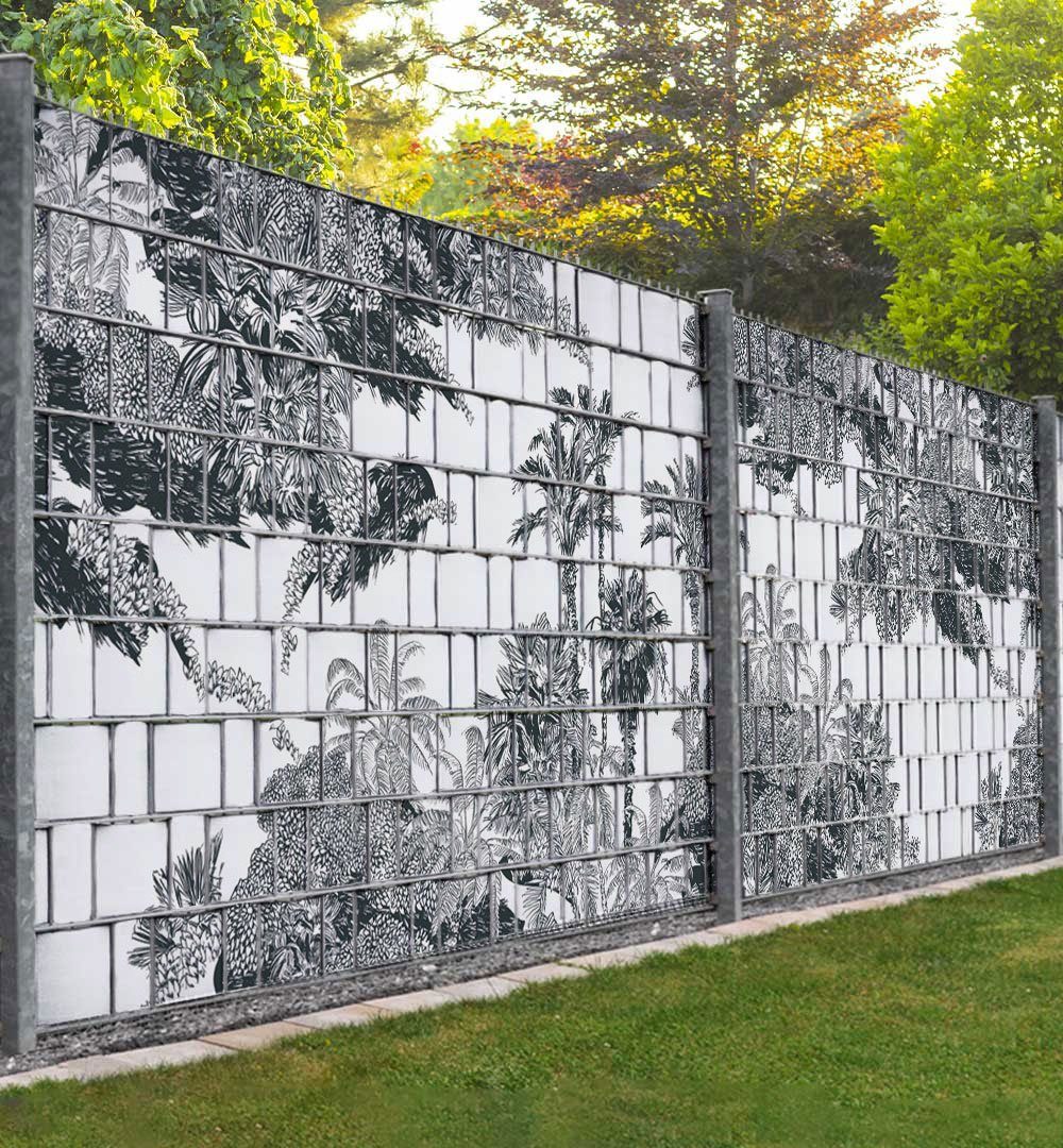 Wie wäre es mit unserem dekorativen Zaunsichtschutz Dschungel Zeichnung mit Bäumen?