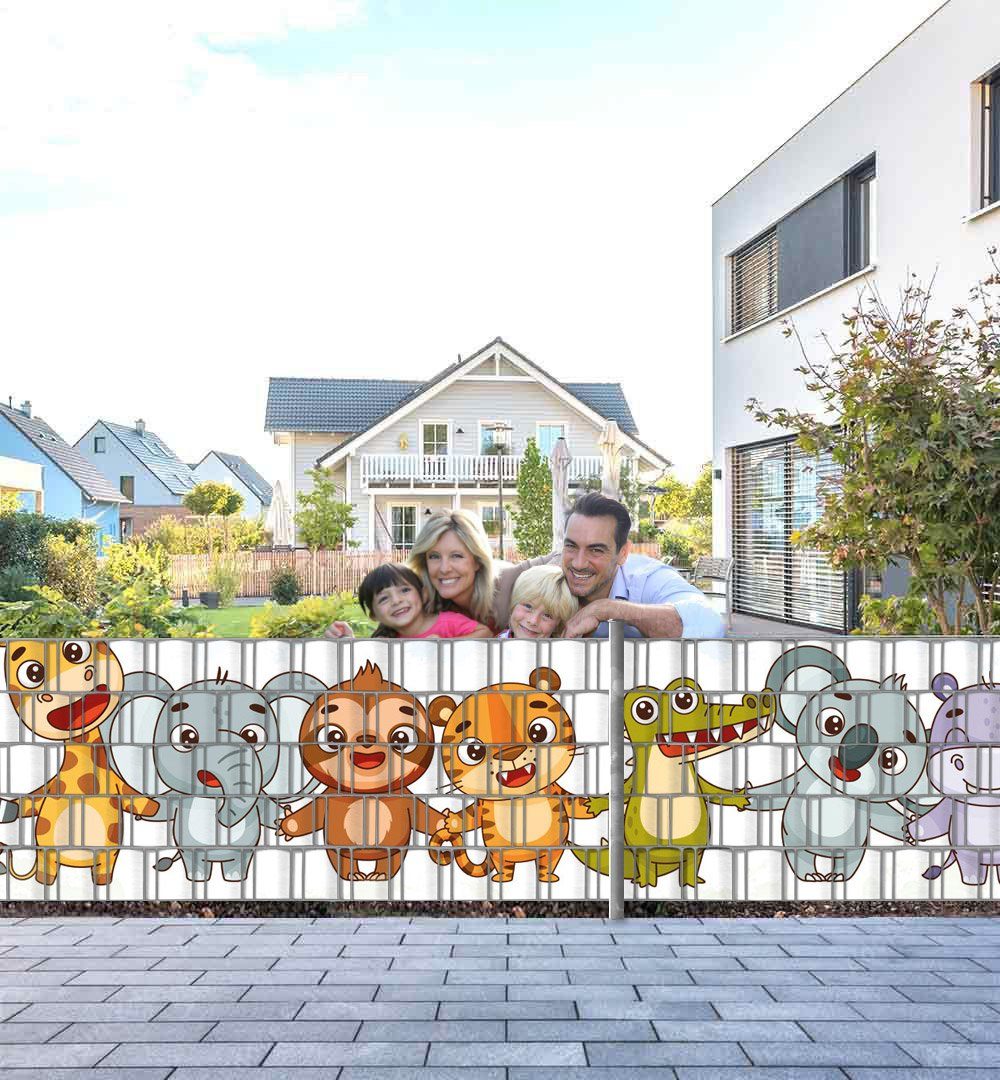 Wie wäre es mit unserem dekorativen Zaunsichtschutz Freundliche Tiere?