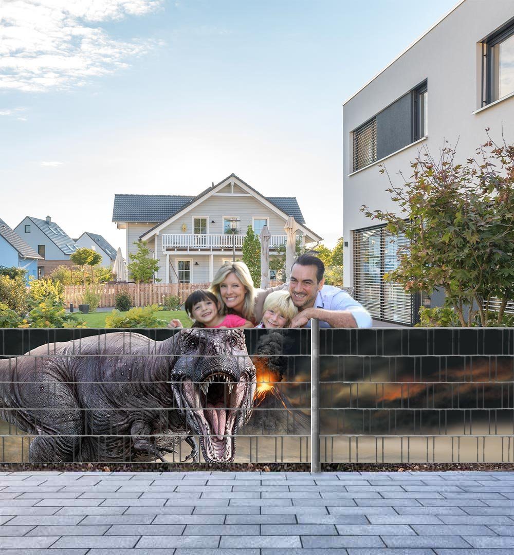 Wie wäre es mit unserem dekorativen Zaunsichtschutz T-Rex?