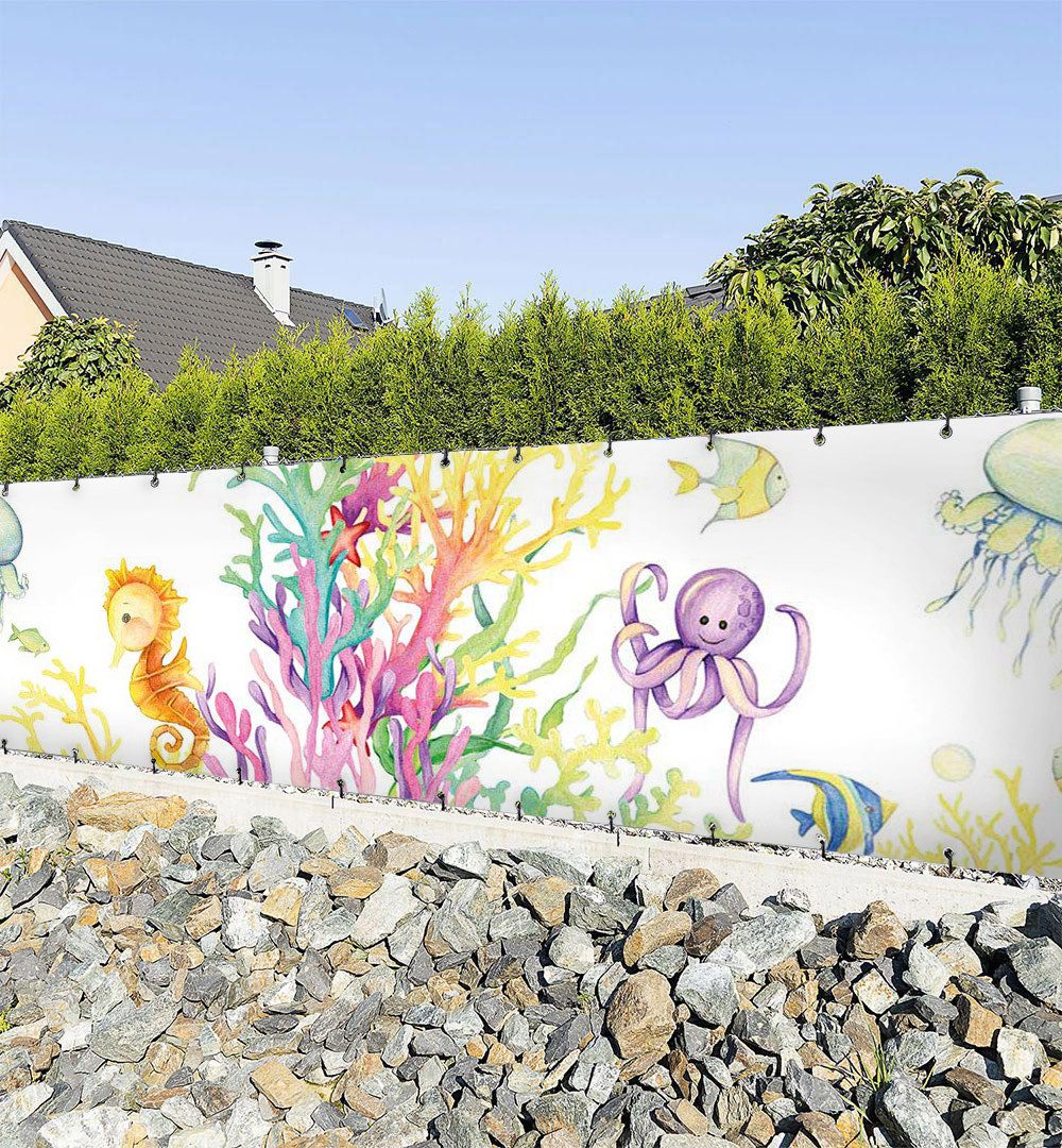 Wie wäre es mit unserem dekorativen Zaunbanner Unterwasser Welt mit Algen und Fischen?
