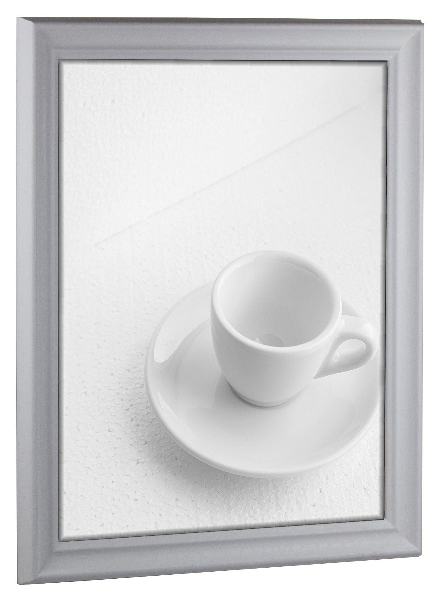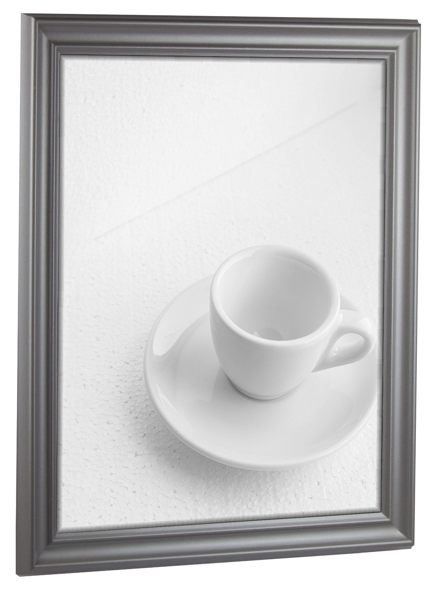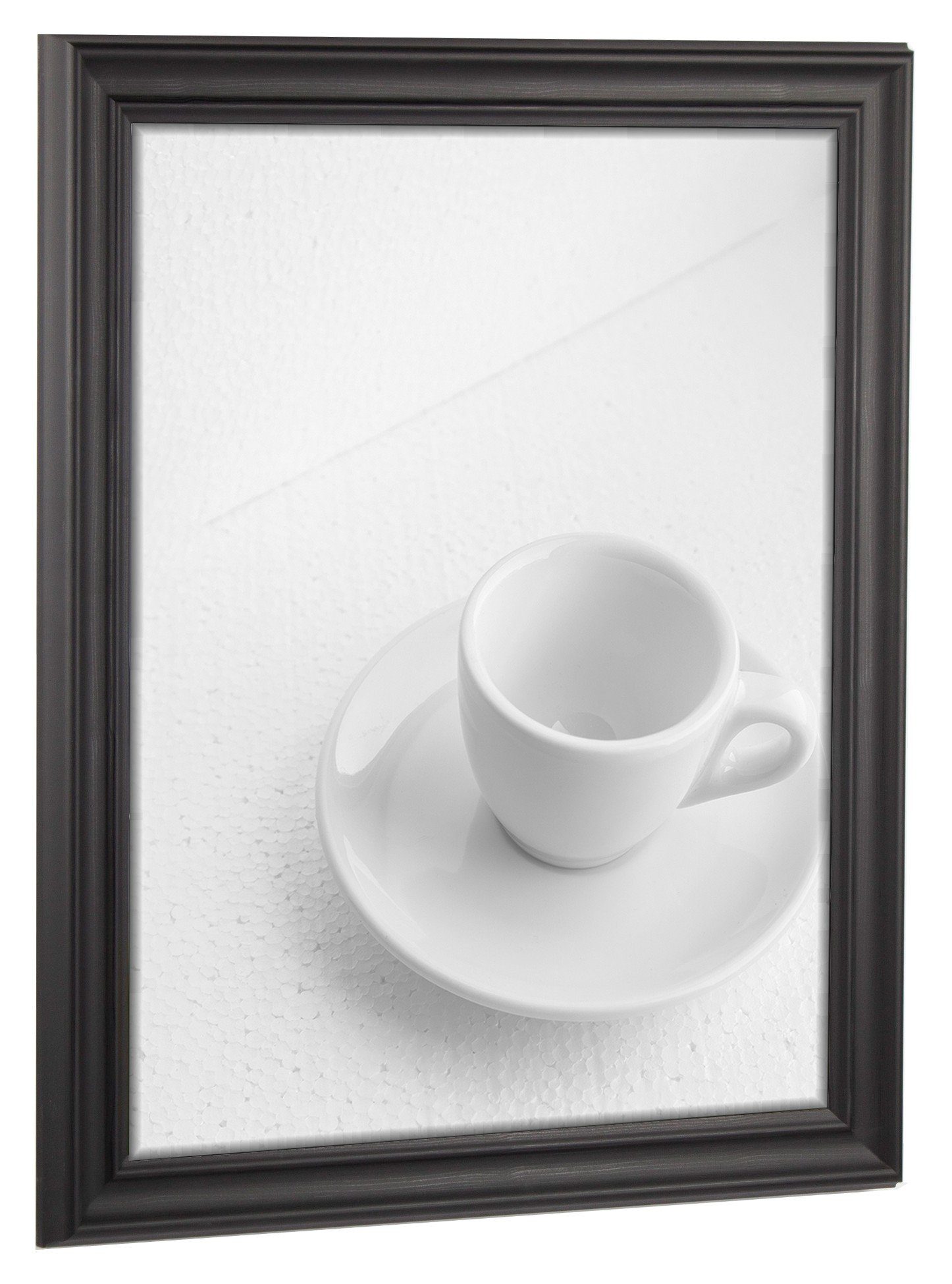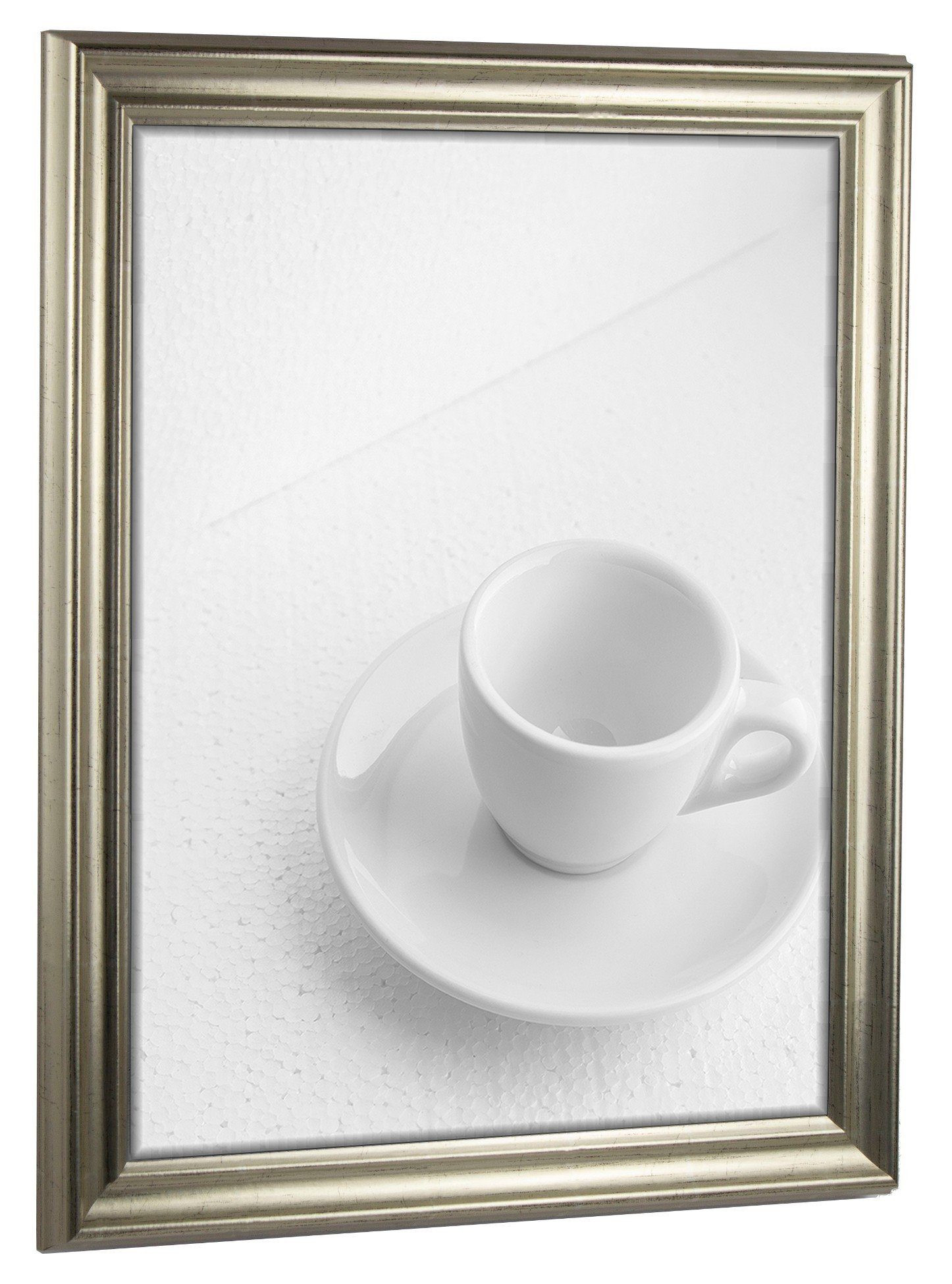 Bilderrahmen mit Kunstglas. Rückwand mit Aufhängern. Es wird kein Passepartout bzw. Hintergrundpapier mitgeliefert. Das angezeigte Motiv ist nicht im Lieferumfang enthalten.