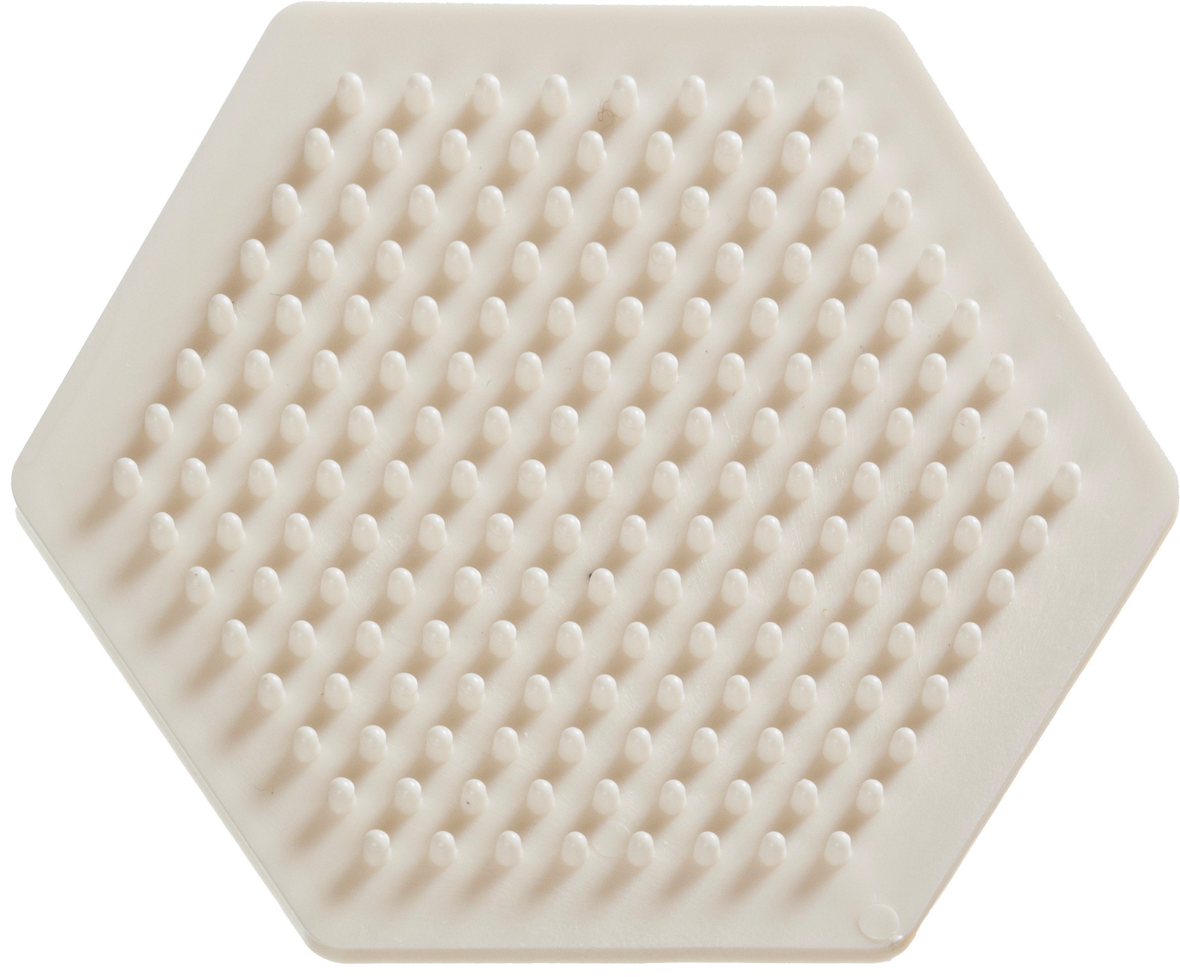 Diese Nabbi Bio Legeplatte hat eine Размер von ca. 9 cm und das Motiv ist ein Hexagon. Die Legeplatte ist eine wichtige Anfangsausstattung für den Bastelspaß mit Nabbi Bio Bügelperlen. Hierauf werden mit Bügelperlen bunte Motive gelegt. Anschließend werden die Motive mit Bügelpapier abgedeckt und mit dem Bügeleisen verschmolzen. Hier ist die Kreativität der Kinder gefragt. Im Nu entstehen Untersetzer, Ohrringe, Schlüsselanhänger und vieles mehr.