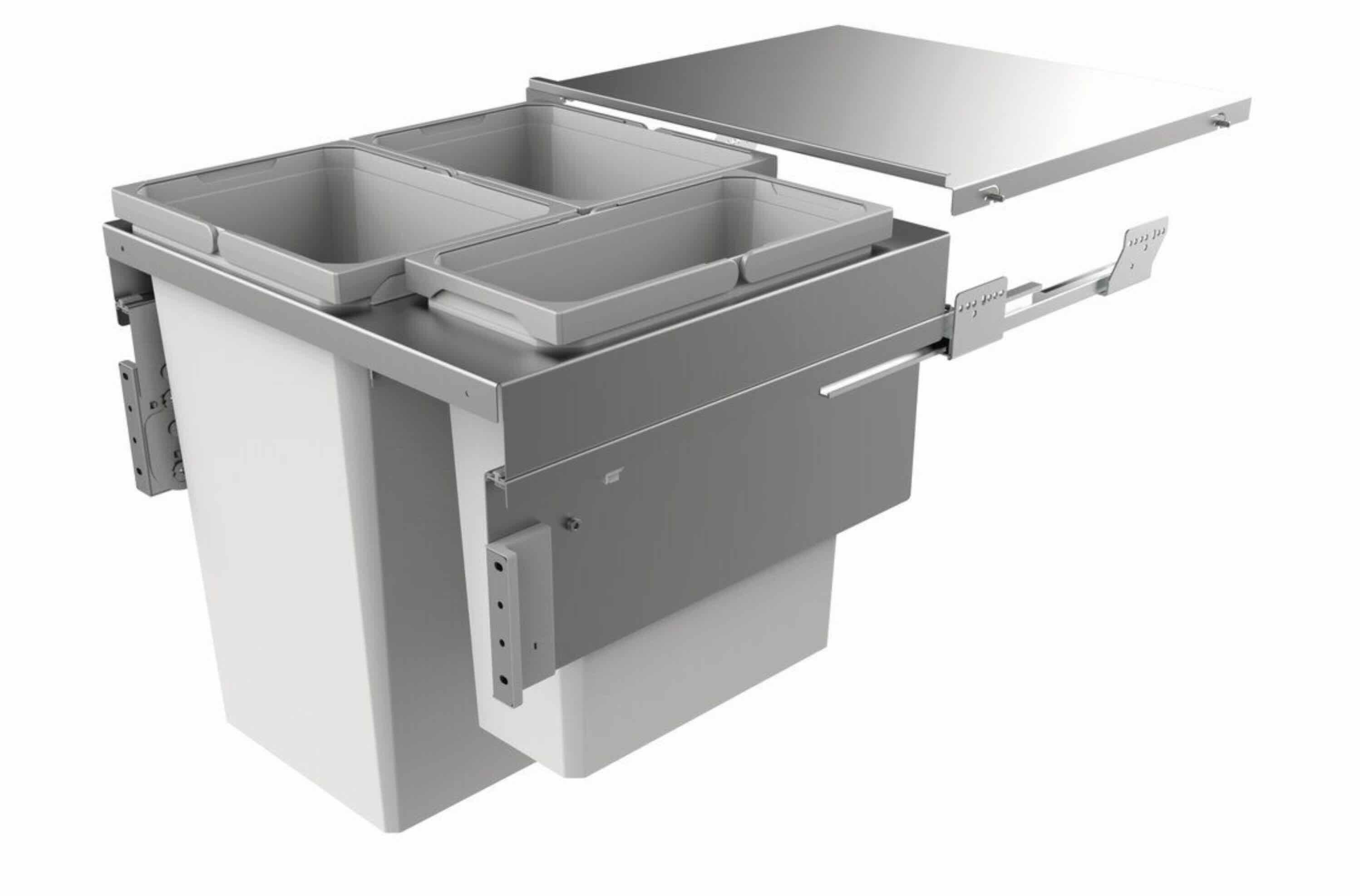 Dieses Abfallsystem ist perfekt für Haushalte, die Wert auf eine klare Mülltrennung und hohe Kapazität legen. Durch die drei unterschiedlich großen Behälter lässt sich Restmüll, Bioabfall oder Wertstofftrennung besonders einfach realisieren.