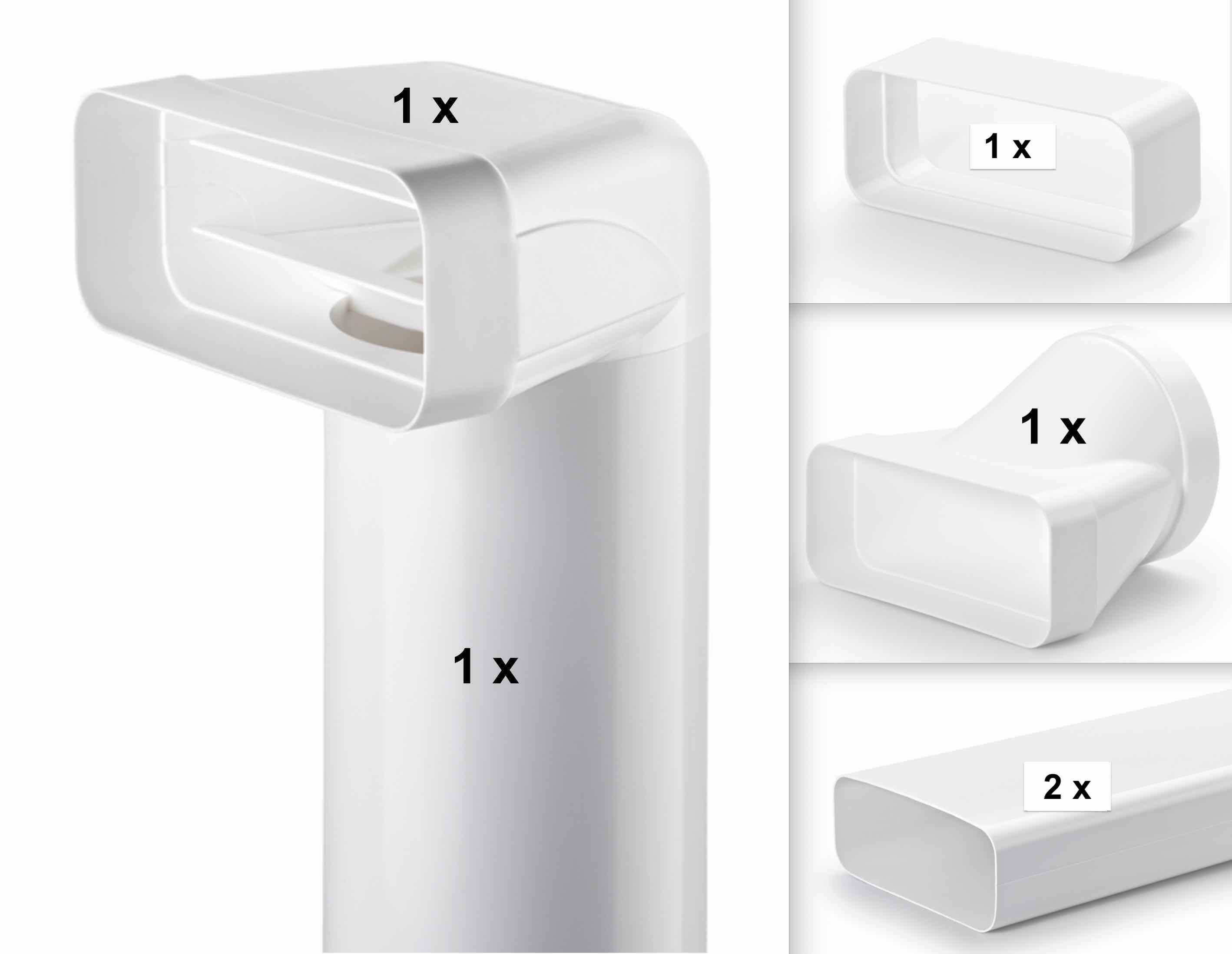 Das Lüftungssystem besteht aus hochwertigem Kunststoff, der für eine langlebige und robuste Nutzung ausgelegt ist. Die einzelnen Komponenten sind präzise verarbeitet und sorgen für eine optimale Luftführung mit geringem Strömungsverlust.