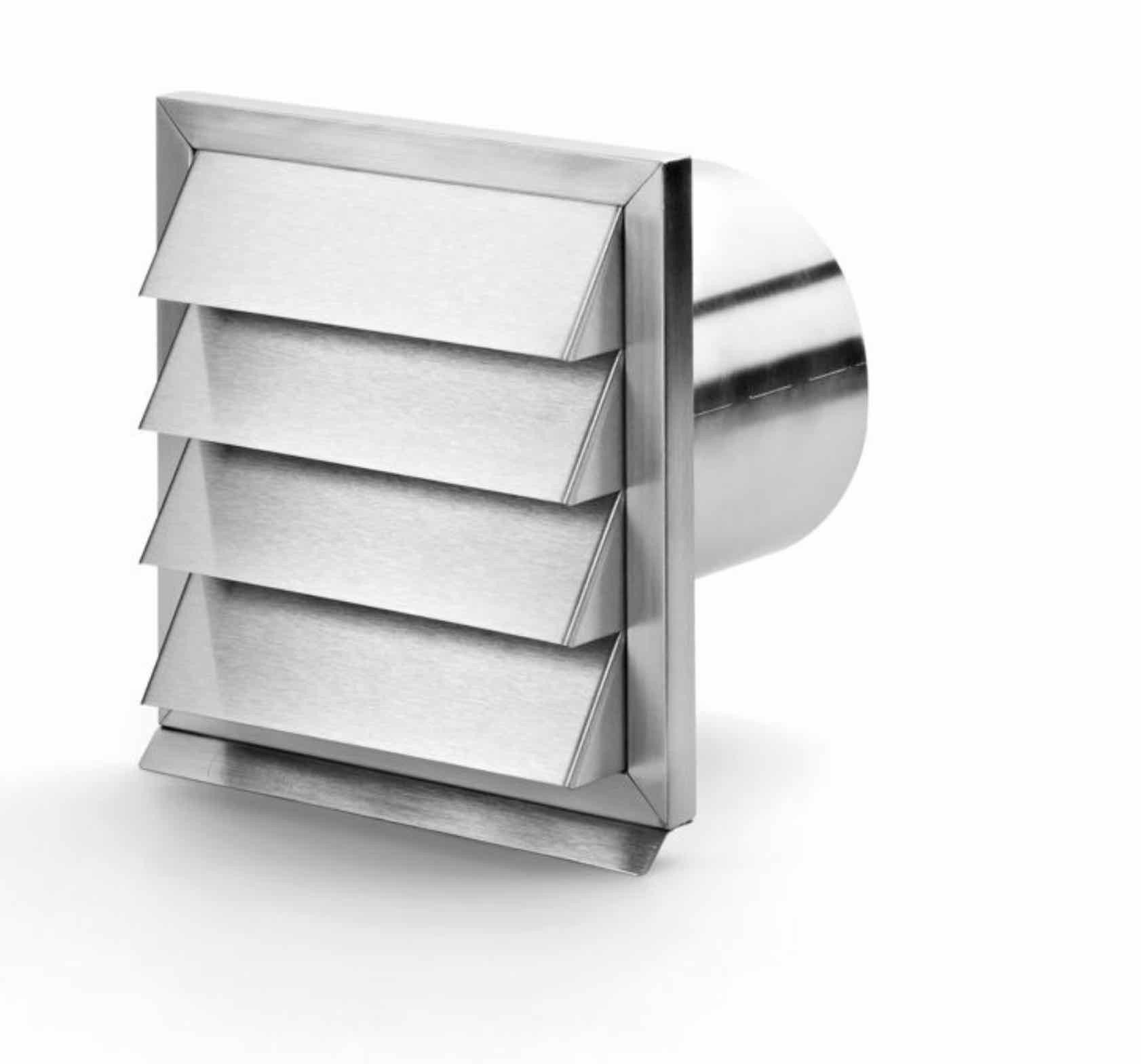 Die COMPAIR® flow E-Jal 200 Außenjalousie aus Edelstahl überzeugt durch modernes Design in Lamellenoptik. Das Material ist witterungsfest und äußerst langlebig. Eine automatisch schließende Rückstauklappe verhindert Energieverluste in der Küche. Die Außenmaße liegen bei 240 x 240 mm.