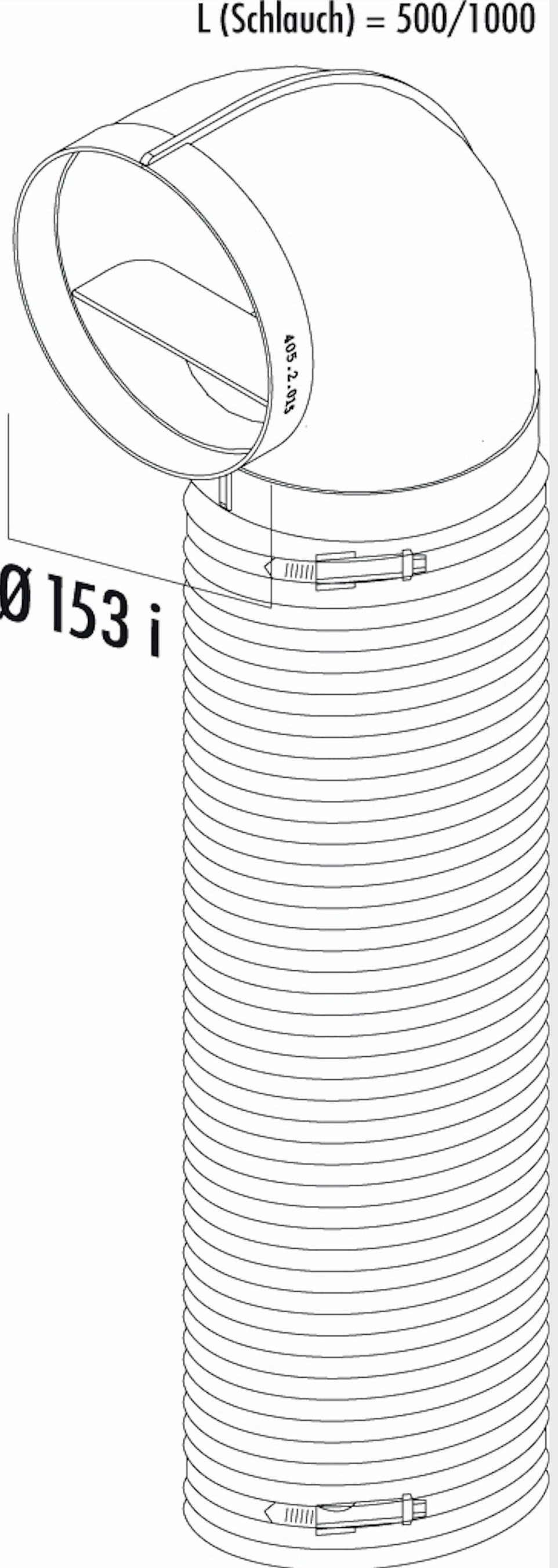 Das Naber R-URX flow 150 Umlenkstück 90° mit Flexschlauch ist ideal zur Integration von Dunstabzugshauben in Abluftsysteme.