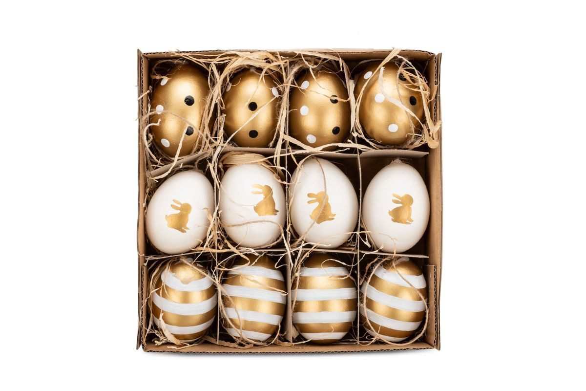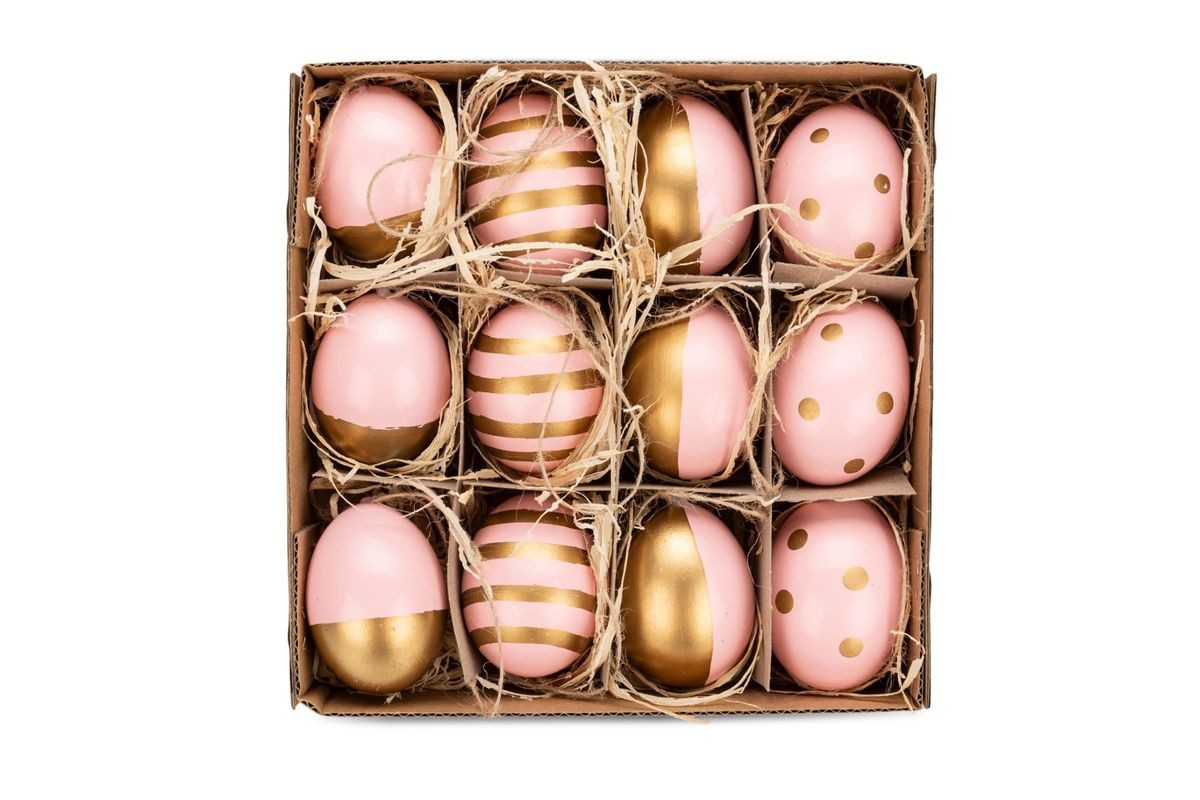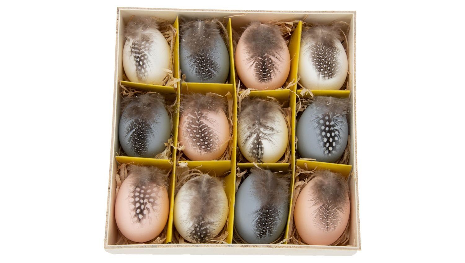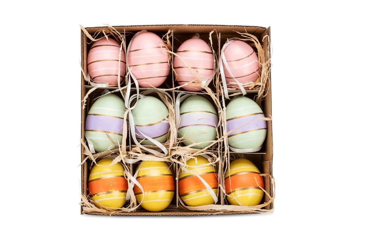 Die Lieferung der Deko-Hühnereier in vielen Farben erfolgt in einer Packung mit 12 Stück; jedes der NaDeco Ostereier ist mit einem Hänger versehen, so dass es sofort zum Dekorieren