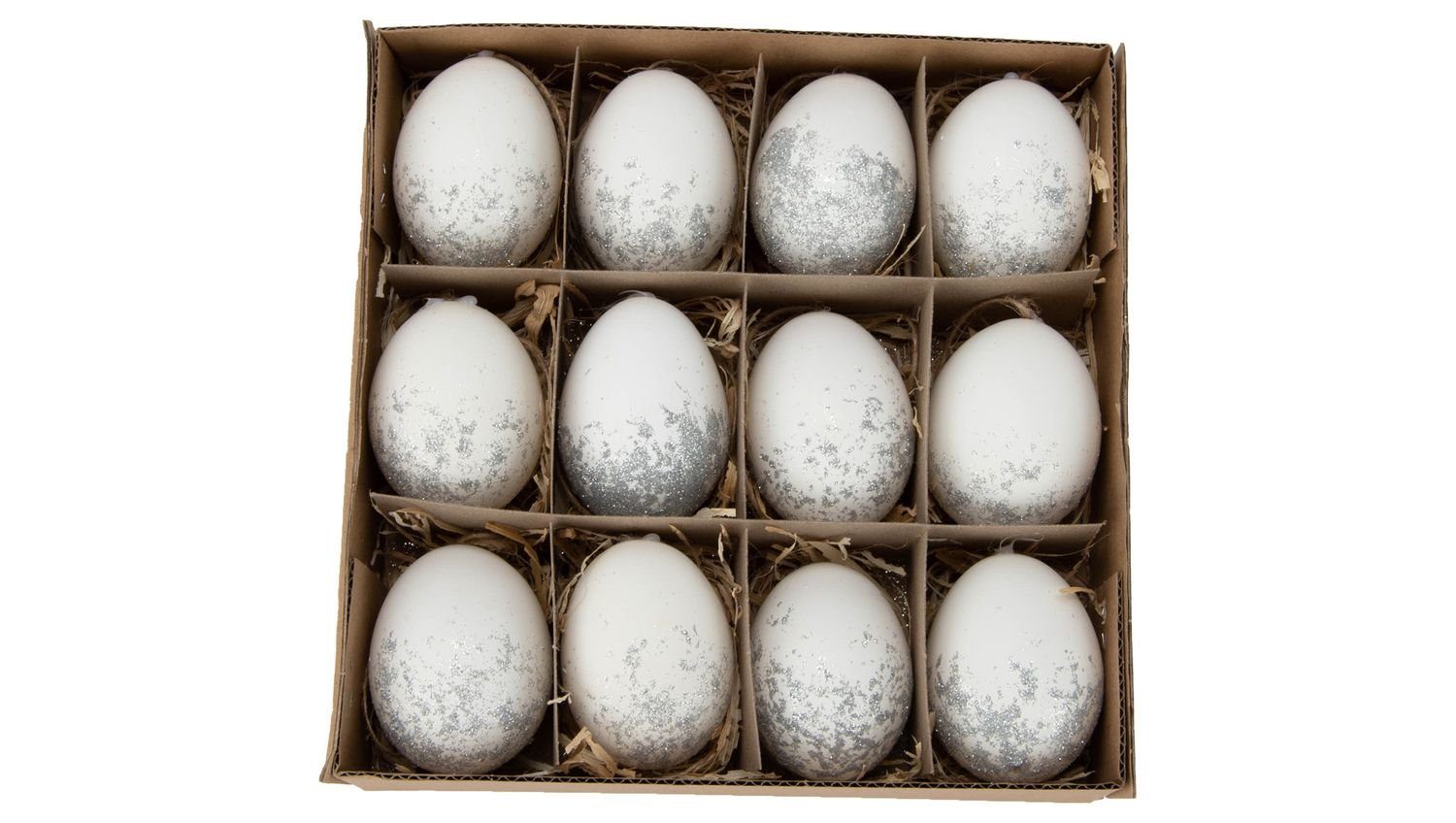 Bei diesen wunderschönen Deko-Ostereiern handelt es sich um echte NaDeco Hühnereier in differenten Ausführungen. Die zauberhaften Deko-Eier für Ostern sind in den folgenden Farben und mit den folgenden Motiven erhältlich: in Weiß mit einer goldenen Feder bemalt, Grün eingefärbt mit einer echten Hühnerfeder, in Rosa mit einer Feder, in Weiß mit Punkten und einer Hühnerfeder, in Schwarz-Weiß mit Punkten sowie in Silber mit Glitzer. Die Lieferung der Deko-Hühnereier erfolgt in einer Packung mit 12 Stück. Jedes Osterei von NaDeco ist mit einem Hänger versehen, so dass es direkt einsatzbereit ist. Все NaDeco Hühnereier sind wurden entleert und sorgfältig gereinigt. Importiert werden die NaDeco Hühnereier in verschiedenen Farben mit unterschiedlichen Motiven aus China. Die NaDeco Ostereier in verschiedenen Ausführungen eignen sich zum Dekorieren von Wohn- und Geschäftsräumen wie zum Beispiel Restaurants, Cafés und Bistros, aber auch Hotels sowie Schaufenstern und Ladengeschäften gleichermaßen. Zudem können die echten Hühnereier mit Motiv oder Feder im Bereich der Floristik weiterverarbeitete und in viele florale Dekoarrangements zu Ostern eingearbeitet werden. Die Deko-Eier können zum Bestücken von Osternestern genutzt oder zum Dekorieren von Ostersträußen und Ostersträuchern eingesetzt werden. Je nach Dekorationsvorhaben lassen sich die NaDeco Ostereier in verschiedenen Farben und mit unterschiedlichen Motiven hervorragend mit anderer Osterdeko aus dem Меню unseres NaDeco Online-Shops kombinieren. Neben Osternestern aus Birkenzweigen oder Birkenreisig können die Deko-Eier zum Beispiel auch mit Deko-Federn in vielen Farben, Raffia-Bast und vielen anderen Ostereiern sowie Moos kombiniert werden.Aufgrund der Tatsache, dass es sich bei diesen NaDeco Hühnereiern mit Motiv um reine Naturprodukte handelt, können die Ostereier in Bezug auf ihre Farbe, Form und Размер sowie die exakte Musterung bzw. das jeweilige Motiv von der Artikelbeschreibung und der Artikelabbildung abweichen. Sollte/n trotz sorgfältiger Verpackung eines oder mehrere der tollen Deko-Ostereier beim Transport beschädigt werden, wird das Dekoei / werden die Dekoeier anteilsmäßig erstattet.