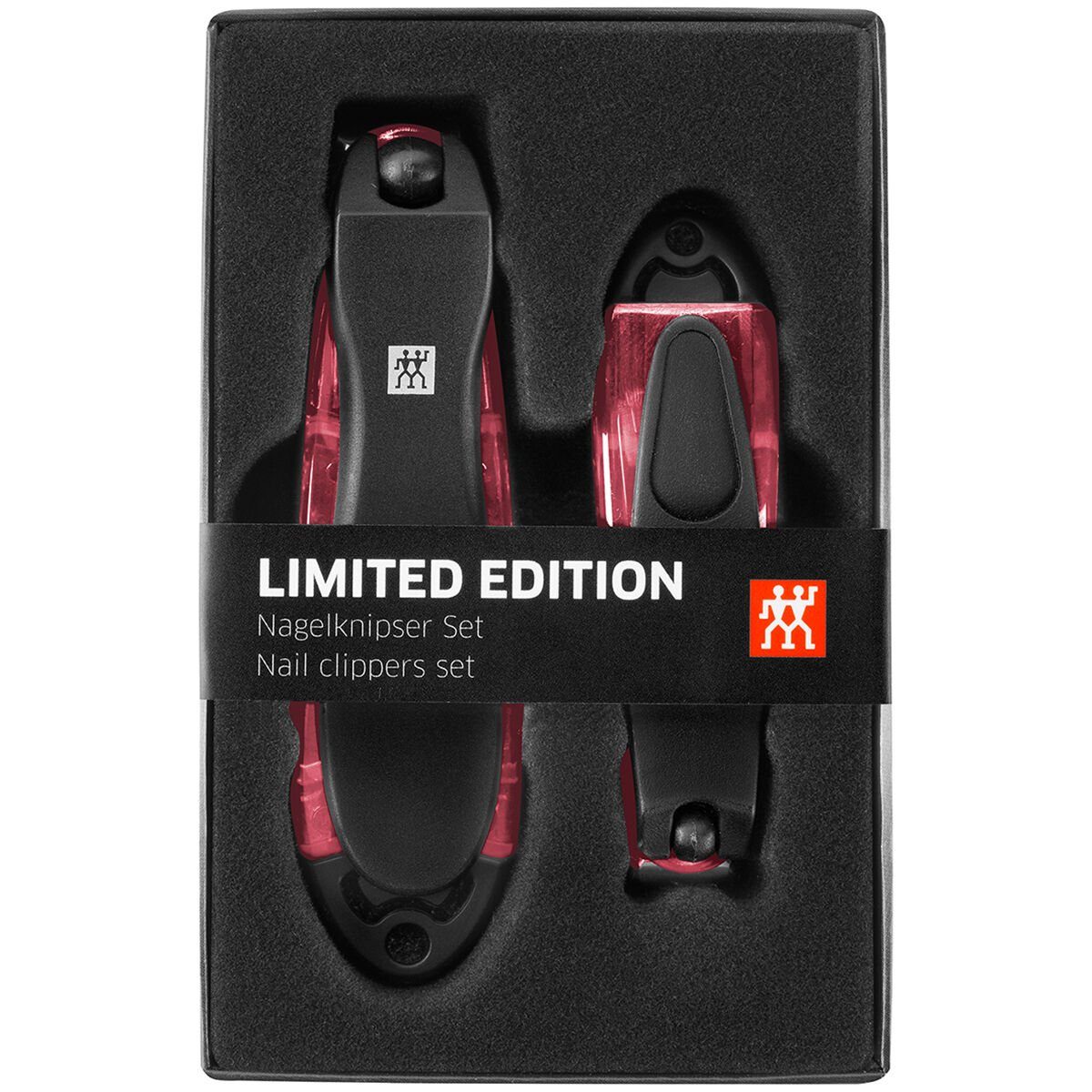 ZWILLING 2 tlg. Nagelknipser-Set rot mit integrierter Nagelfeile in Geschenkschachtel • 2 ZWILLING Classic Inox Nagelknipser (klein und groß) aus wertigem Kunststoff • Scharfe, hochpräzise sowie drehbare Schneide aus rostfreiem Edelstahl • Mit integrierter Nagelfeile • Erhältlich in den Farben blau und rot