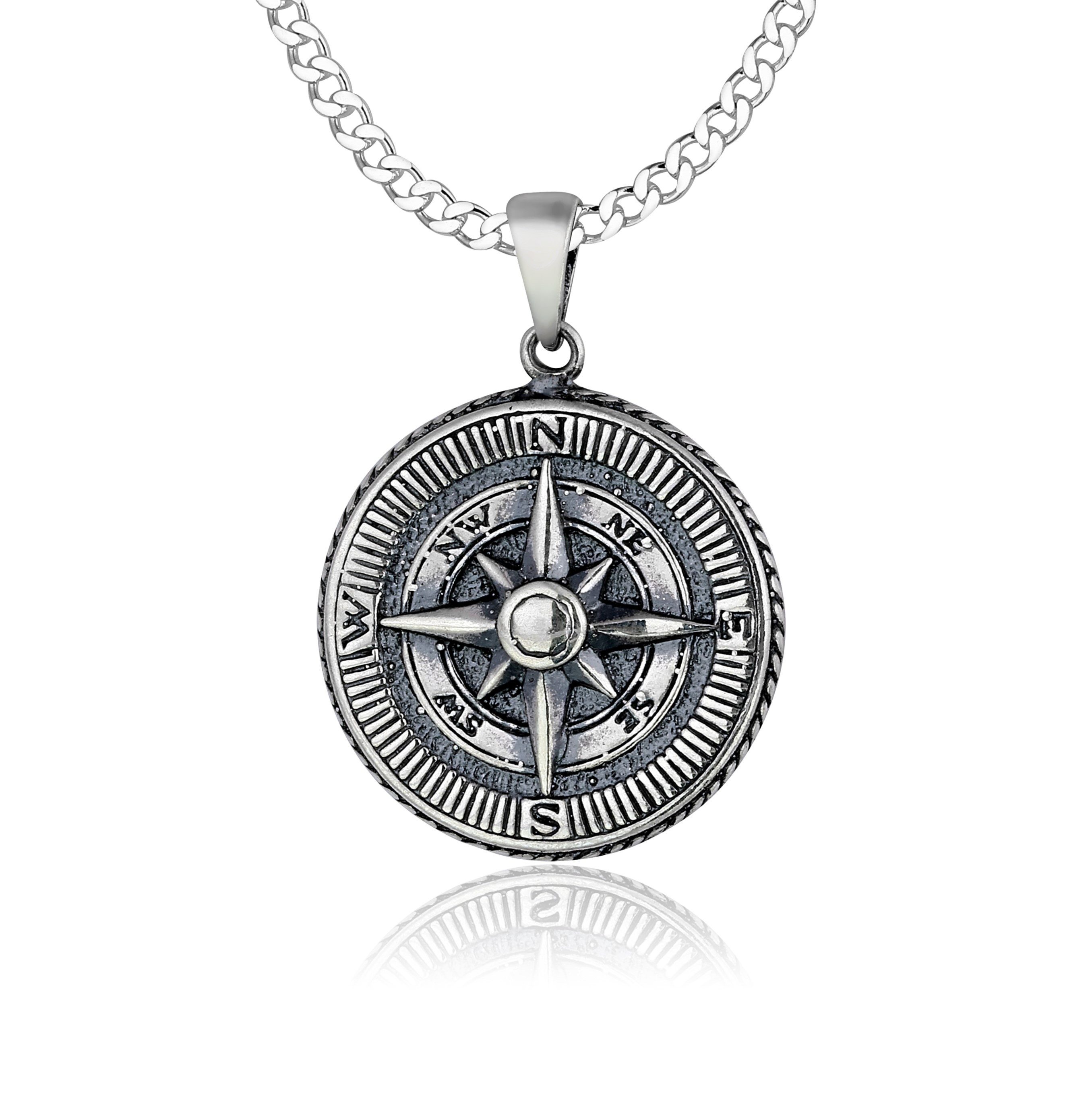 925 Silberkette und 925 Silber Kompass Anhänger mit Silber Panzerkette
