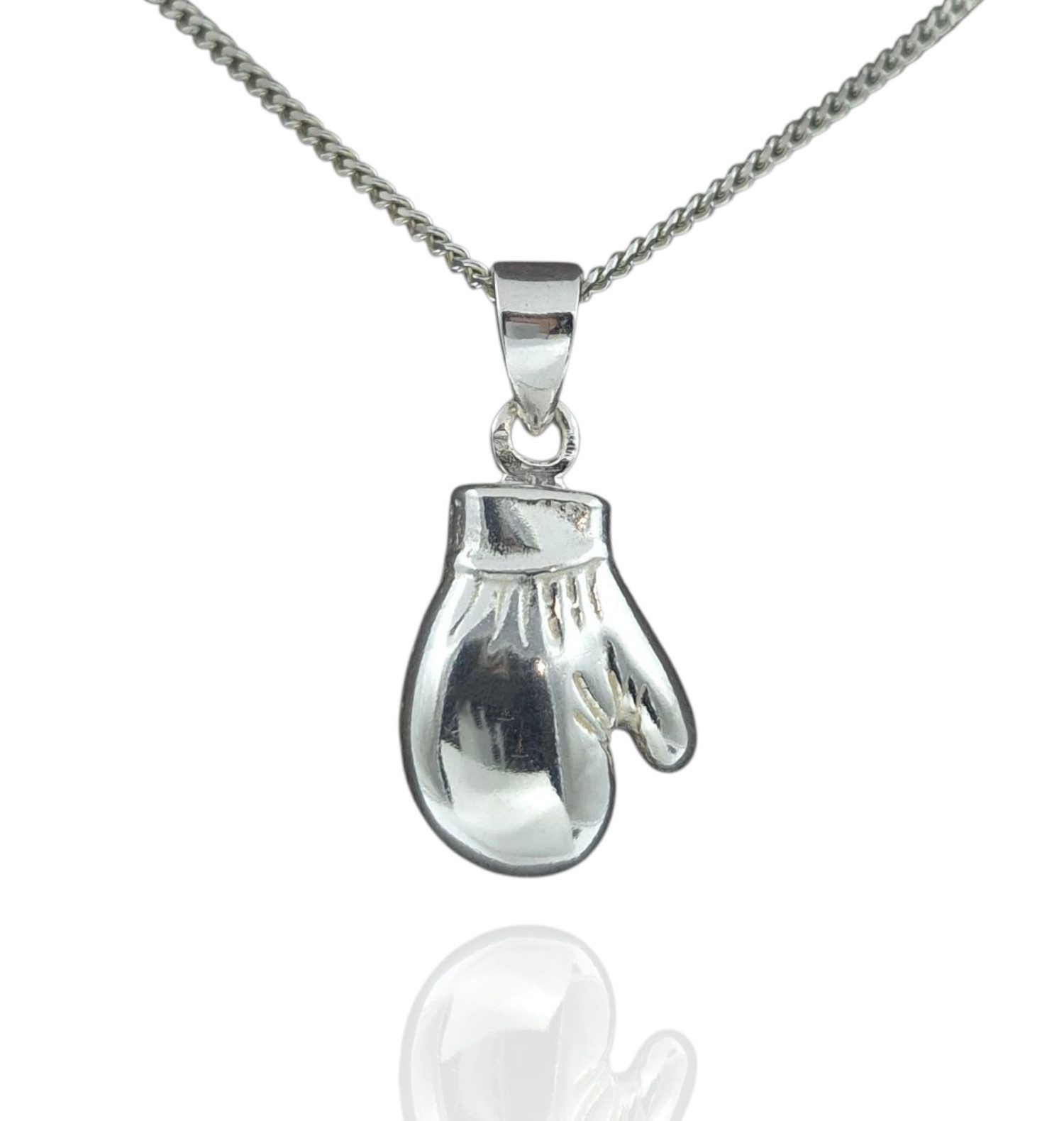 925 Silberkette und 925 Silber Boxhandschuh Anhänger mit Silber Panzerkette
