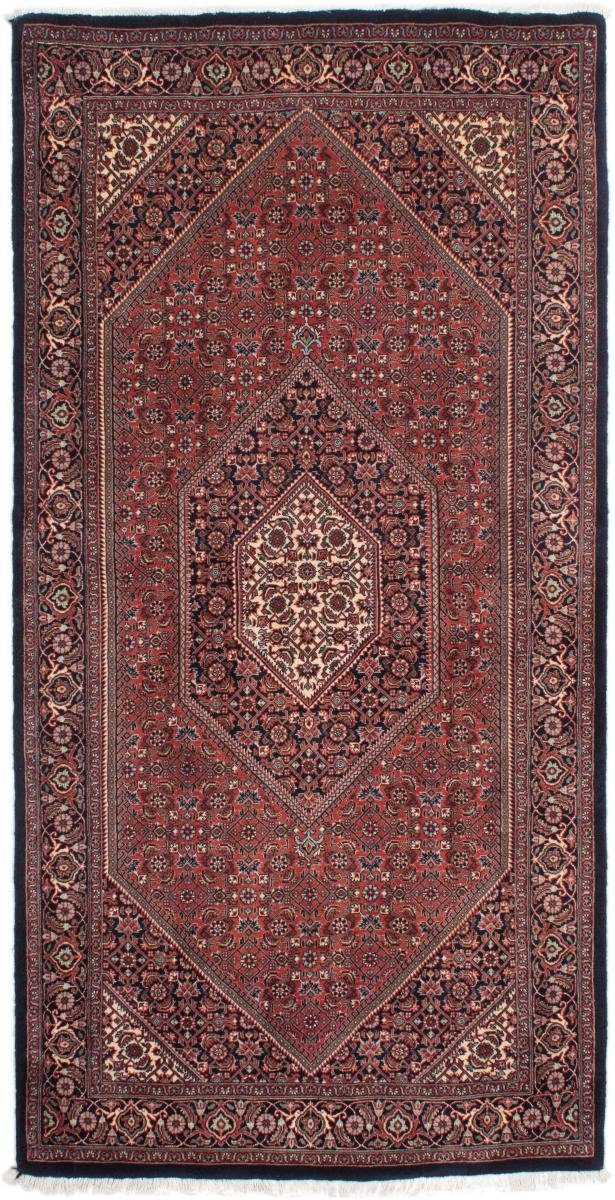 Dieser persische Bidjar Teppich wurde von Hand geknüpft, auf die traditionellste Art und Weise, Teppiche herzustellen. Mit seiner zertifizierten Herkunft verkörpert der Bidjar Teppich ein Höchstmaß an Kunsthandwerk und die wahrscheinlich aufwändigste Art, einen Teppich herzustellen. Er besitzt eine Dichte von 450000 / m² und ist damit ein sehr feines Kunstwerk mit einer langen Lebensdauer. Der Teppich wurde über einen Zeitraum von mehreren Monaten geknüpft und hat eine Размер von 202 mal 101. Dank der alten Handwerkskunst hat er eine Dicke von nur 15 mm, ein Indikator für hohe Qualität. Der Teppich besteht aus Handgesponnene Wolle und wurde mit natürlichen Farbstoffen gefärbt. Dank des natürlichen Materials ist dieser Perserteppich ideal auch für Fußbodenheizungen und Kinder. Er wiegt 10.00 kg und befindet sich im perfekten Zustand. Die Herkunft des Teppichs wird von unseren Experten durch ein offizielles Zertifikat bestätigt.