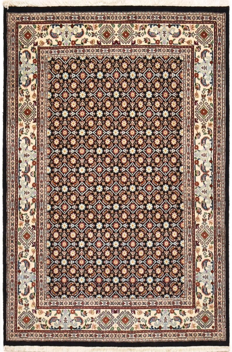 Dieser persische Moud Teppich wurde von Hand geknüpft, auf die traditionellste Art und Weise, Teppiche herzustellen. Mit seiner zertifizierten Herkunft verkörpert der Moud Teppich ein Höchstmaß an Kunsthandwerk und die wahrscheinlich aufwändigste Art, einen Teppich herzustellen. Er besitzt eine Dichte von 300000 / m² und ist damit ein sehr feines Kunstwerk mit einer langen Lebensdauer. Der Teppich wurde über einen Zeitraum von mehreren Monaten geknüpft und hat eine Размер von 148 mal 99. Dank der alten Handwerkskunst hat er eine Dicke von nur 12 mm, ein Indikator für hohe Qualität. Der Teppich besteht aus Wolle mit Seide und wurde mit natürlichen Farbstoffen gefärbt. Dank des natürlichen Materials ist dieser Perserteppich ideal auch für Fußbodenheizungen und Kinder. Er wiegt 5.00 kg und befindet sich im perfekten Zustand. Die Herkunft des Teppichs wird von unseren Experten durch ein offizielles Zertifikat bestätigt.