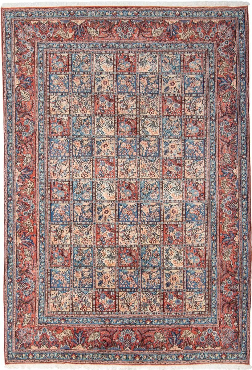 Dieser persische Moud Garden Teppich wurde von Hand geknüpft, auf die traditionellste Art und Weise, Teppiche herzustellen. Mit seiner zertifizierten Herkunft verkörpert der Moud Garden Teppich ein Höchstmaß an Kunsthandwerk und die wahrscheinlich aufwändigste Art, einen Teppich herzustellen. Er besitzt eine Dichte von 350000 / m² und ist damit ein sehr feines Kunstwerk mit einer langen Lebensdauer. Der Teppich wurde über einen Zeitraum von mehreren Monaten geknüpft und hat eine Размер von 299 mal 203. Dank der alten Handwerkskunst hat er eine Dicke von nur 12 mm, ein Indikator für hohe Qualität. Der Teppich besteht aus Wolle mit Seide und wurde mit natürlichen Farbstoffen gefärbt. Dank des natürlichen Materials ist dieser Perserteppich ideal auch für Fußbodenheizungen und Kinder. Er wiegt 21.00 kg und befindet sich im perfekten Zustand. Die Herkunft des Teppichs wird von unseren Experten durch ein offizielles Zertifikat bestätigt.
