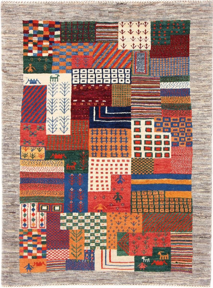 Dieser Gabbeh Teppich wurde von Hand aus feiner Naturwolle von Schafen geknüpft. Er hat einen schönen Glanz und ist mit einer Dicke von 12 mm unglaublich weich. Dieser Teppich hat einen robusten Flor und wurde in Persien in traditioneller Handwerkskunst gefertigt. Gabbeh-Teppiche erfreuen sich in den letzten Jahren aufgrund ihrer hervorragenden Qualität und ihres modernen Designs großer Beliebtheit. Mit einer Dichte von 160000 / m² fertigte ein erfahrener Knüpfer diesen Gabbeh Teppich über einen Zeitraum von mehreren Monaten. Er zeichnet sich durch ein modernes Design und eine hervorragende Qualität aus.