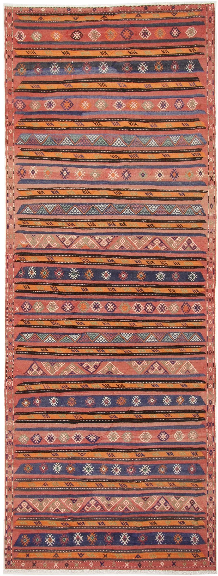 Dieser Kelim wurde von Hand aus natürlicher Wolle gewebt. Kelims erfreuten sich in den letzten Jahren großer Beliebtheit aufgrund ihrer lebendigen Farben und ihrer zeitlosen geometrischen Designs. Darüber hinaus verkörpert dieser Kelim eine jahrhundertealte Handwerkskunst. Er stammt aus dem Land Persien/Iran, das für eine lange Tradition der Teppichknüpfung und -weberei bekannt ist. Dieser Teppich wiegt nur 10.00 kg und ist damit leicht genug, um ihn schnell in einem anderen Raum zu platzieren oder ihn sogar als Decke oder Wandteppich zu verwenden. Der Ursprung dieses Teppichs wird in einem separaten Zertifikat bestätigt.
