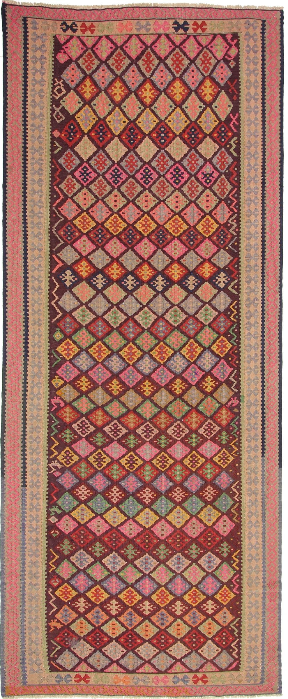 Dieser Kelim wurde von Hand aus natürlicher Wolle gewebt. Kelims erfreuten sich in den letzten Jahren großer Beliebtheit aufgrund ihrer lebendigen Farben und ihrer zeitlosen geometrischen Designs. Darüber hinaus verkörpert dieser Kelim eine jahrhundertealte Handwerkskunst. Er stammt aus dem Land Persien/Iran, das für eine lange Tradition der Teppichknüpfung und -weberei bekannt ist. Dieser Teppich wiegt nur 11.00 kg und ist damit leicht genug, um ihn schnell in einem anderen Raum zu platzieren oder ihn sogar als Decke oder Wandteppich zu verwenden. Der Ursprung dieses Teppichs wird in einem separaten Zertifikat bestätigt.