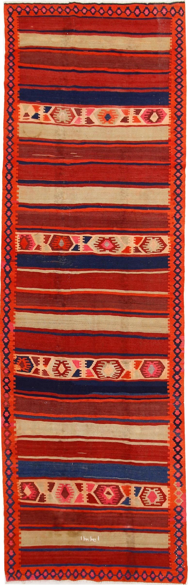 Dieser Kelim wurde von Hand aus natürlicher Wolle gewebt. Kelims erfreuten sich in den letzten Jahren großer Beliebtheit aufgrund ihrer lebendigen Farben und ihrer zeitlosen geometrischen Designs. Darüber hinaus verkörpert dieser Kelim eine jahrhundertealte Handwerkskunst. Er stammt aus dem Land Persien/Iran, das für eine lange Tradition der Teppichknüpfung und -weberei bekannt ist. Dieser Teppich wiegt nur 9.00 kg und ist damit leicht genug, um ihn schnell in einem anderen Raum zu platzieren oder ihn sogar als Decke oder Wandteppich zu verwenden. Der Ursprung dieses Teppichs wird in einem separaten Zertifikat bestätigt.
