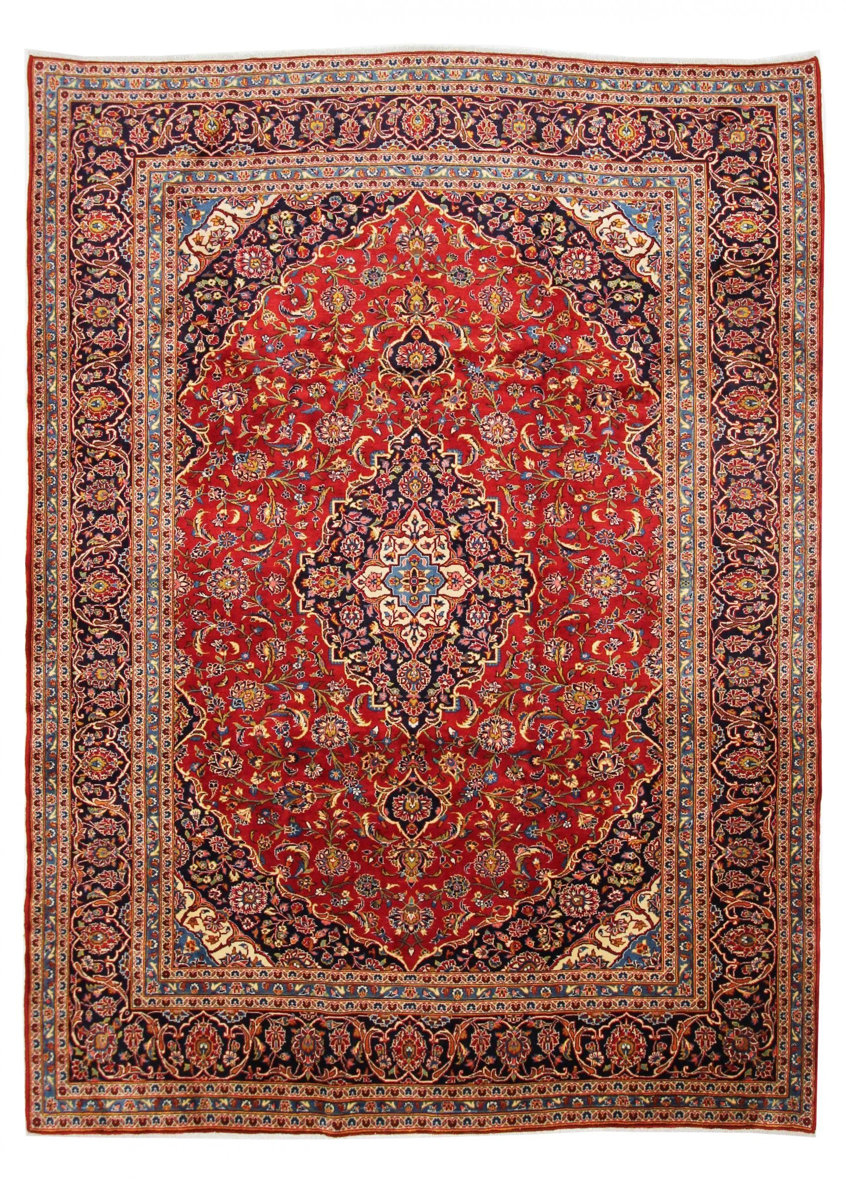 Dieser persische Keshan Teppich wurde von Hand geknüpft, auf die traditionellste Art und Weise, Teppiche herzustellen. Mit seiner zertifizierten Herkunft verkörpert der Keshan Teppich ein Höchstmaß an Kunsthandwerk und die wahrscheinlich aufwändigste Art, einen Teppich herzustellen. Es besitzt eine Dichte von 200000 / m² und ist damit ein sehr feines Kunstwerk mit einer langen Lebensdauer. Der Teppich wurde über einen Zeitraum von mehreren Monaten geknüpft und hat eine Размер von 343 mal 254. Dank der alten Handwerkskunst hat er eine Dicke von nur 12 mm, ein Indikator für hohe Qualität. Der Teppich besteht aus Wolle und wurde mit natürlichen Farbstoffen gefärbt. Dank des natürlichen Materials ist dieser Perserteppich ideal auch für Fußbodenheizungen und Kinder. Er wiegt 30.00 kg und befindet sich im perfekten Zustand. Die Herkunft des Teppichs wird von unseren Experten durch ein offizielles Zertifikat bestätigt.