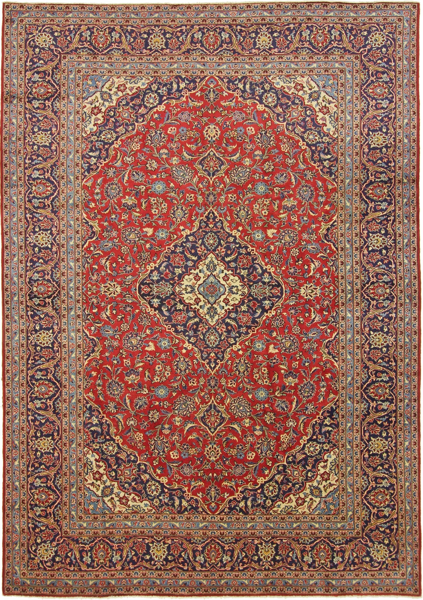 Dieser persische Keshan Teppich wurde von Hand geknüpft, auf die traditionellste Art und Weise, Teppiche herzustellen. Mit seiner zertifizierten Herkunft verkörpert der Keshan Teppich ein Höchstmaß an Kunsthandwerk und die wahrscheinlich aufwändigste Art, einen Teppich herzustellen. Es besitzt eine Dichte von 200000 / m² und ist damit ein sehr feines Kunstwerk mit einer langen Lebensdauer. Der Teppich wurde über einen Zeitraum von mehreren Monaten geknüpft und hat eine Размер von 352 mal 244. Dank der alten Handwerkskunst hat er eine Dicke von nur 12 mm, ein Indikator für hohe Qualität. Der Teppich besteht aus Wolle und wurde mit natürlichen Farbstoffen gefärbt. Dank des natürlichen Materials ist dieser Perserteppich ideal auch für Fußbodenheizungen und Kinder. Er wiegt 30.00 kg und befindet sich im perfekten Zustand. Die Herkunft des Teppichs wird von unseren Experten durch ein offizielles Zertifikat bestätigt.