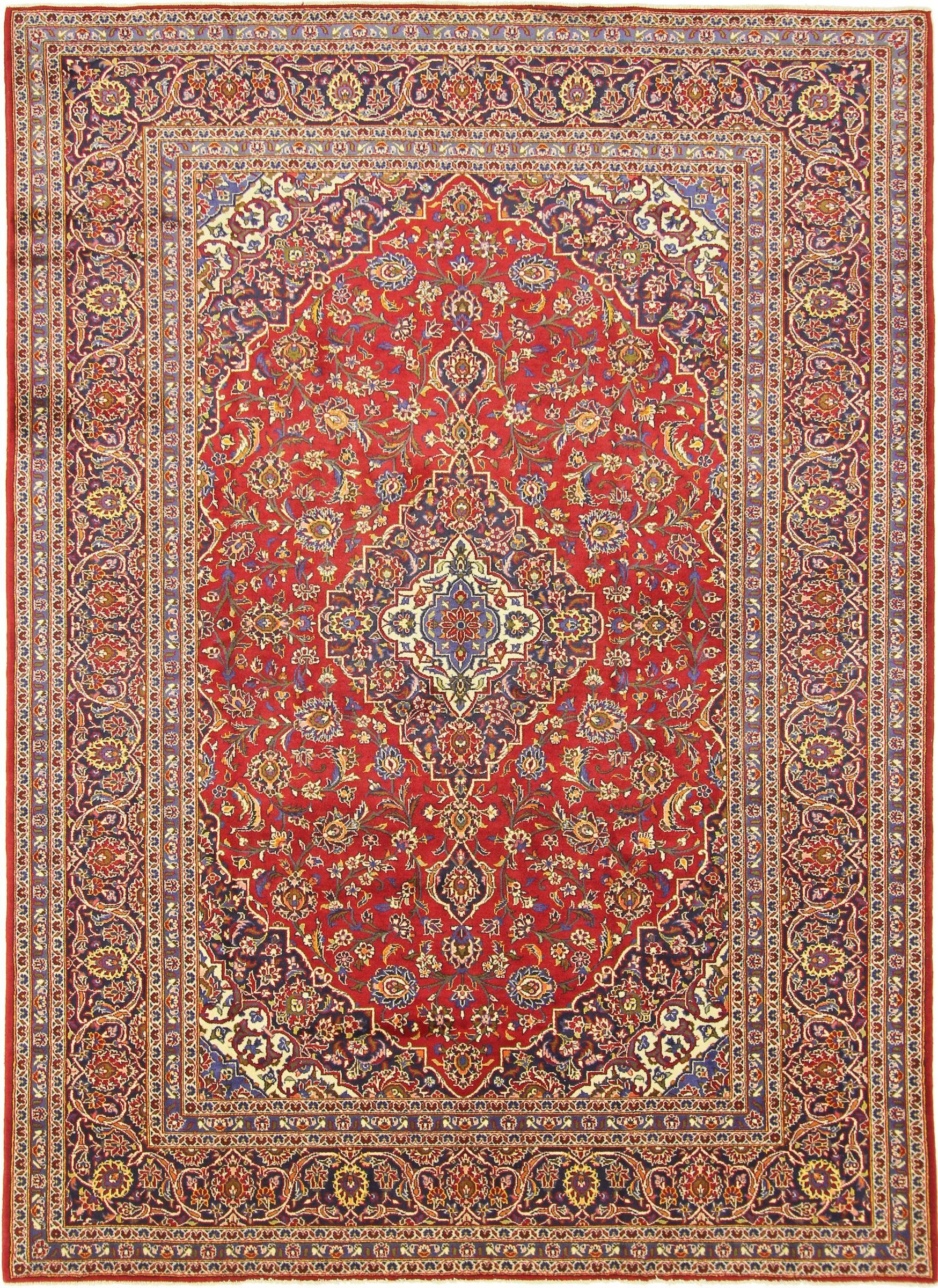Dieser persische Keshan Teppich wurde von Hand geknüpft, auf die traditionellste Art und Weise, Teppiche herzustellen. Mit seiner zertifizierten Herkunft verkörpert der Keshan Teppich ein Höchstmaß an Kunsthandwerk und die wahrscheinlich aufwändigste Art, einen Teppich herzustellen. Es besitzt eine Dichte von 200000 / m² und ist damit ein sehr feines Kunstwerk mit einer langen Lebensdauer. Der Teppich wurde über einen Zeitraum von mehreren Monaten geknüpft und hat eine Размер von 352 mal 255. Dank der alten Handwerkskunst hat er eine Dicke von nur 12 mm, ein Indikator für hohe Qualität. Der Teppich besteht aus Wolle und wurde mit natürlichen Farbstoffen gefärbt. Dank des natürlichen Materials ist dieser Perserteppich ideal auch für Fußbodenheizungen und Kinder. Er wiegt 31.00 kg und befindet sich im perfekten Zustand. Die Herkunft des Teppichs wird von unseren Experten durch ein offizielles Zertifikat bestätigt.