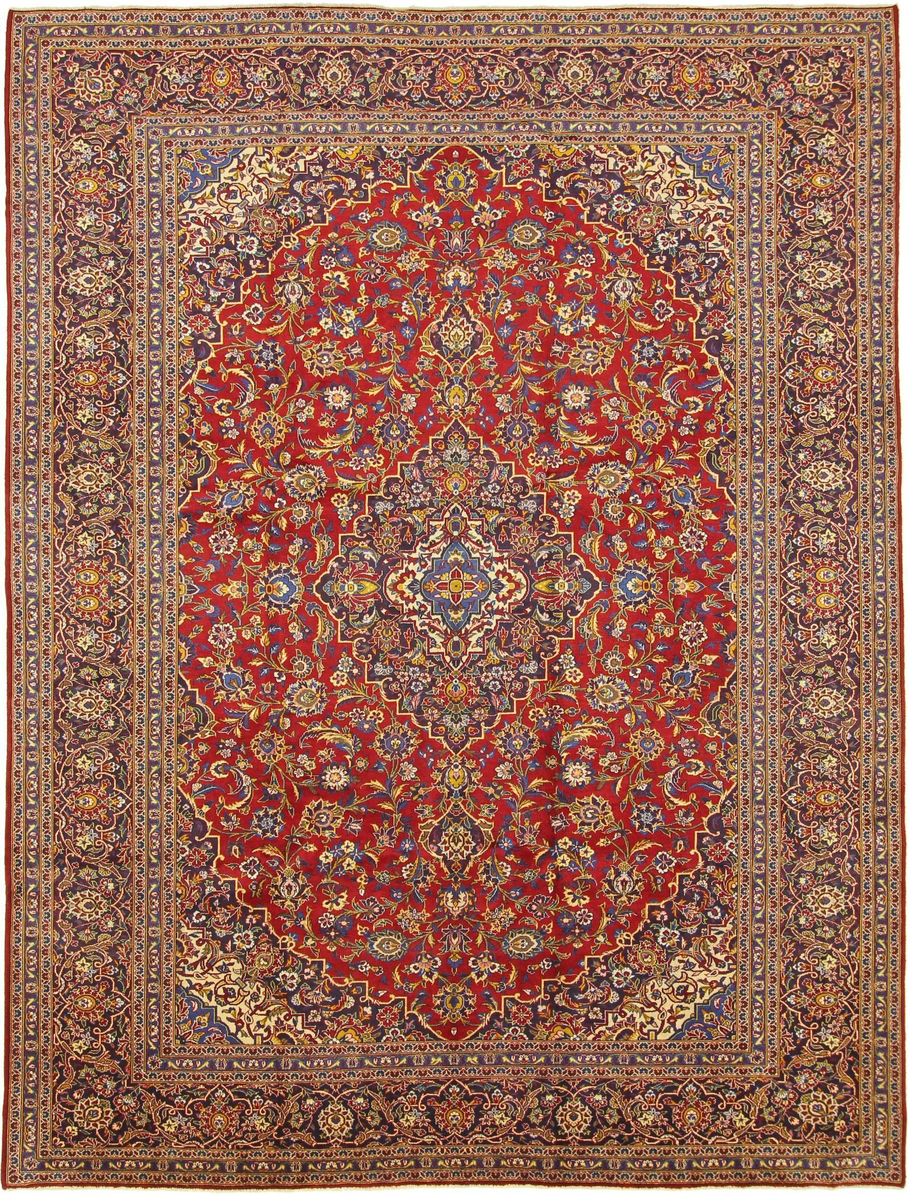 Dieser persische Keshan Teppich wurde von Hand geknüpft, auf die traditionellste Art und Weise, Teppiche herzustellen. Mit seiner zertifizierten Herkunft verkörpert der Keshan Teppich ein Höchstmaß an Kunsthandwerk und die wahrscheinlich aufwändigste Art, einen Teppich herzustellen. Es besitzt eine Dichte von 200000 / m² und ist damit ein sehr feines Kunstwerk mit einer langen Lebensdauer. Der Teppich wurde über einen Zeitraum von mehreren Monaten geknüpft und hat eine Размер von 411 mal 307. Dank der alten Handwerkskunst hat er eine Dicke von nur 12 mm, ein Indikator für hohe Qualität. Der Teppich besteht aus Wolle und wurde mit natürlichen Farbstoffen gefärbt. Dank des natürlichen Materials ist dieser Perserteppich ideal auch für Fußbodenheizungen und Kinder. Er wiegt 38.00 kg und befindet sich im perfekten Zustand. Die Herkunft des Teppichs wird von unseren Experten durch ein offizielles Zertifikat bestätigt.