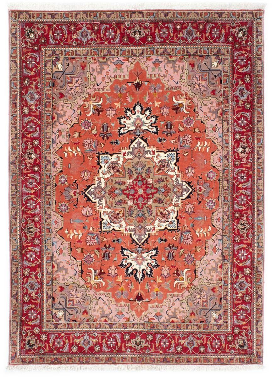 Dieser persische Täbriz 50Raj Teppich wurde von Hand geknüpft, auf die traditionellste Art und Weise, Teppiche herzustellen. Mit seiner zertifizierten Herkunft verkörpert der Täbriz 50Raj Teppich ein Höchstmaß an Kunsthandwerk und die wahrscheinlich aufwändigste Art, einen Teppich herzustellen. Er besitzt eine Dichte von 500000 / m² und ist damit ein sehr feines Kunstwerk mit einer langen Lebensdauer. Der Teppich wurde über einen Zeitraum von mehreren Monaten geknüpft und hat eine Размер von 201 mal 146. Dank der alten Handwerkskunst hat er eine Dicke von nur 7 mm, ein Indikator für hohe Qualität. Der Teppich besteht aus Handgesponnene Wolle und wurde mit natürlichen Farbstoffen gefärbt. Dank des natürlichen Materials ist dieser Perserteppich ideal auch für Fußbodenheizungen und Kinder. Er wiegt 9.00 kg und befindet sich im perfekten Zustand. Die Herkunft des Teppichs wird von unseren Experten durch ein offizielles Zertifikat bestätigt.