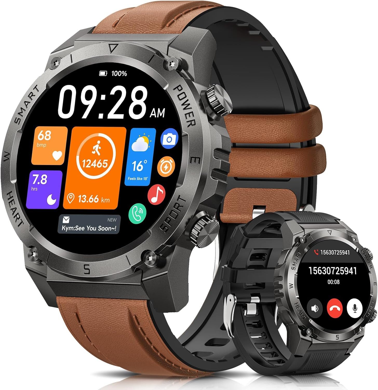 Smartwatch Herren mit Telefonfunktion, 500mAh Akku Militär Smart Watch 1.46" HD Fitnessuhr 24/7 Herzfrequenz/SpO2/Schlafmonitor, 110 Sportmodi IP68 Wasserdicht iOS Android, 2 Armbänders
