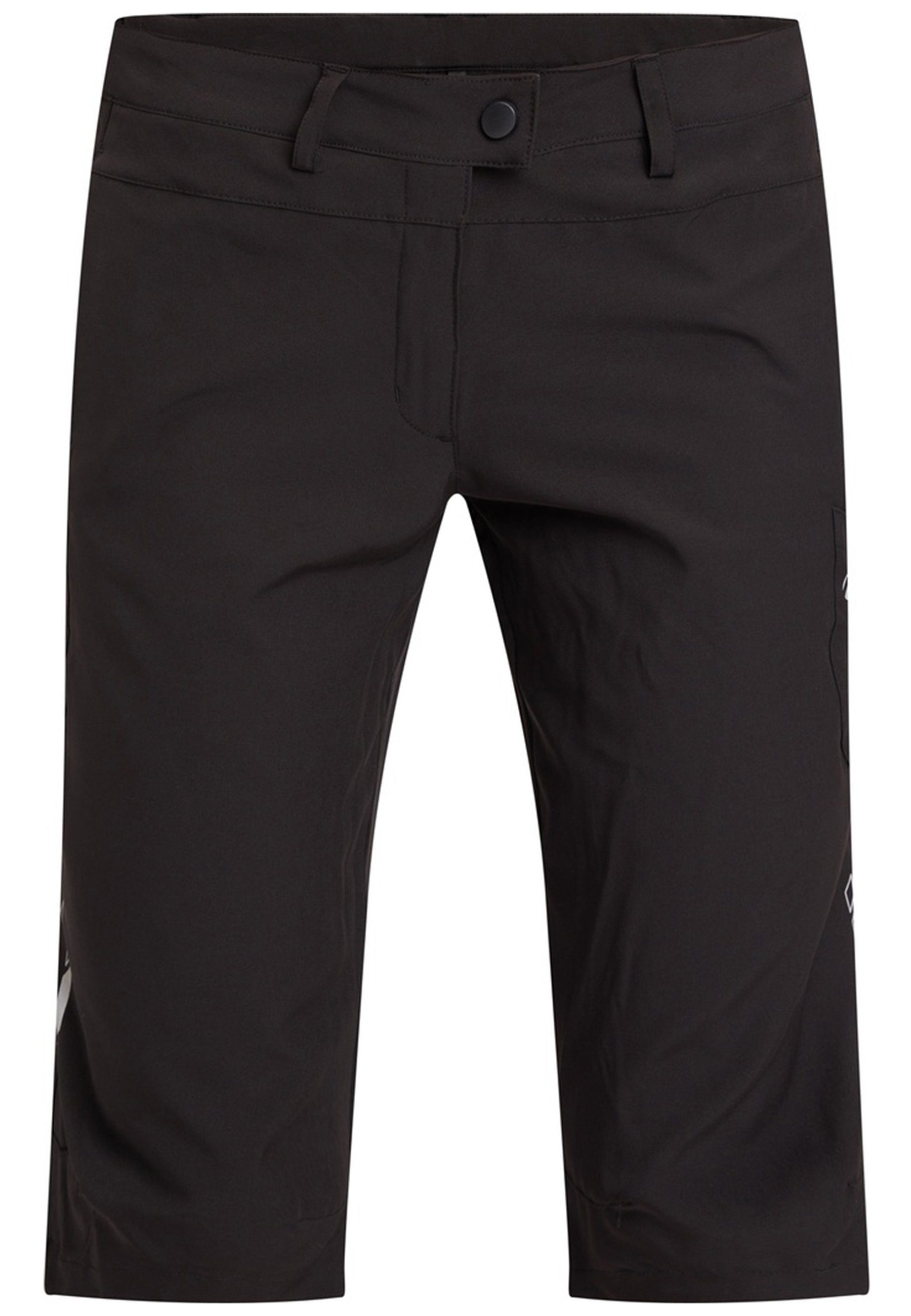 NAKAMURAs 2-in1-Radsporthose Inga in Caprilänge setzt sich aus einer Außenhose und einer darunterliegenden engen Radhose zusammen. Die Außenhose bietet optimale Bewegungsfreiheit dank des elastischen Materials, welches aufgrund seiner Atmungsaktivität für ein angenehmes Trageklima sorgt. Zudem garantiert die herausnehmbare Innenhose mit6-Bahnen-Konstruktion und PREMIUM Sitzpolster mit VERSAFLEX GEL Einsatz auch bei längeren Radtouren ein super komfortables Fahrgefühl. Die Außenhose verfügt über einen weitenverstellbaren Taillenbund mit Tunnelband und Klett sowie über Gürtelschlaufen, die Innenhose kommt mit einem rundum elastischen Gummibund. Eine aufgesetzte, offene Tasche auf der linken Seitennaht inklusive reflektierende Logo ergänzt das Design.