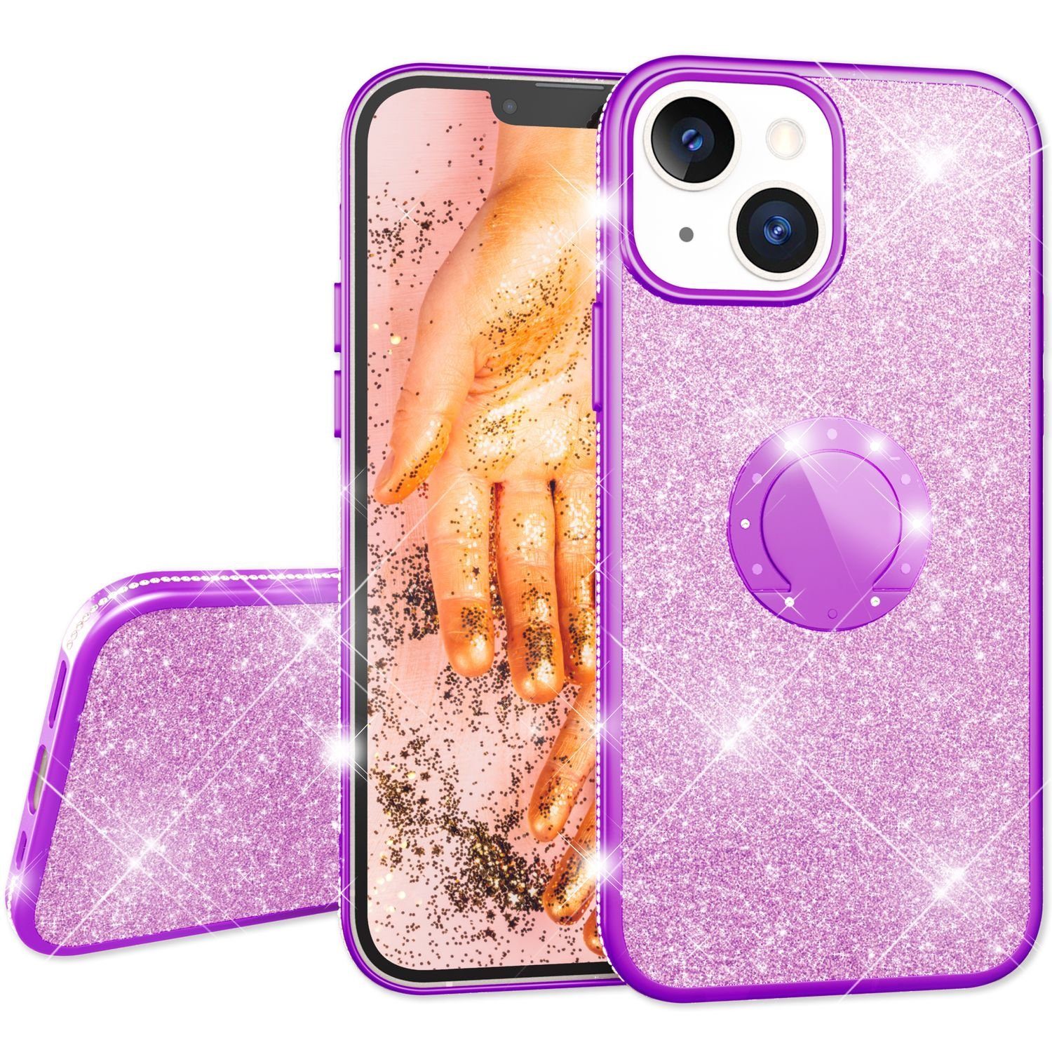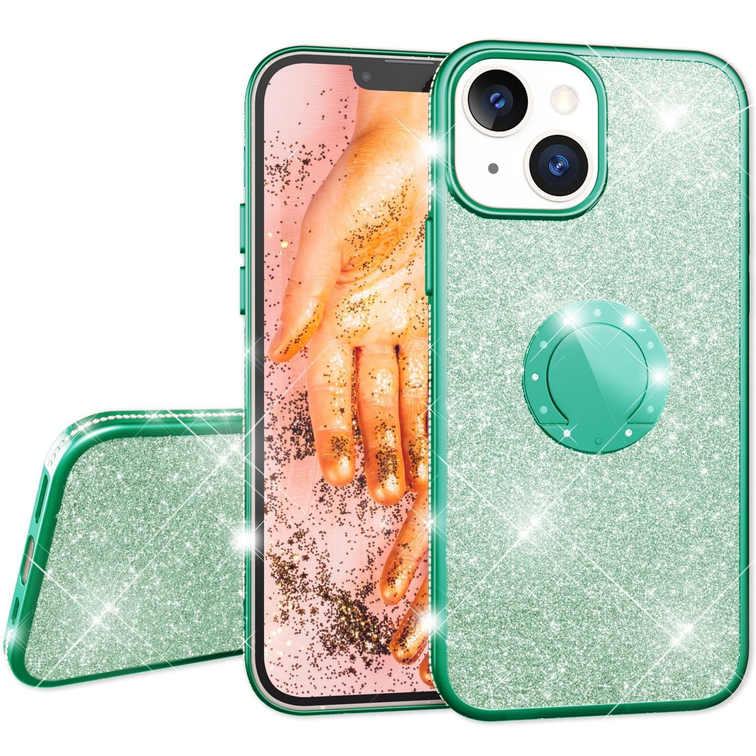 1x NALIA Glitzerhülle mit 360° Ring-Halterung kompatibel mit iPhone 13 mini