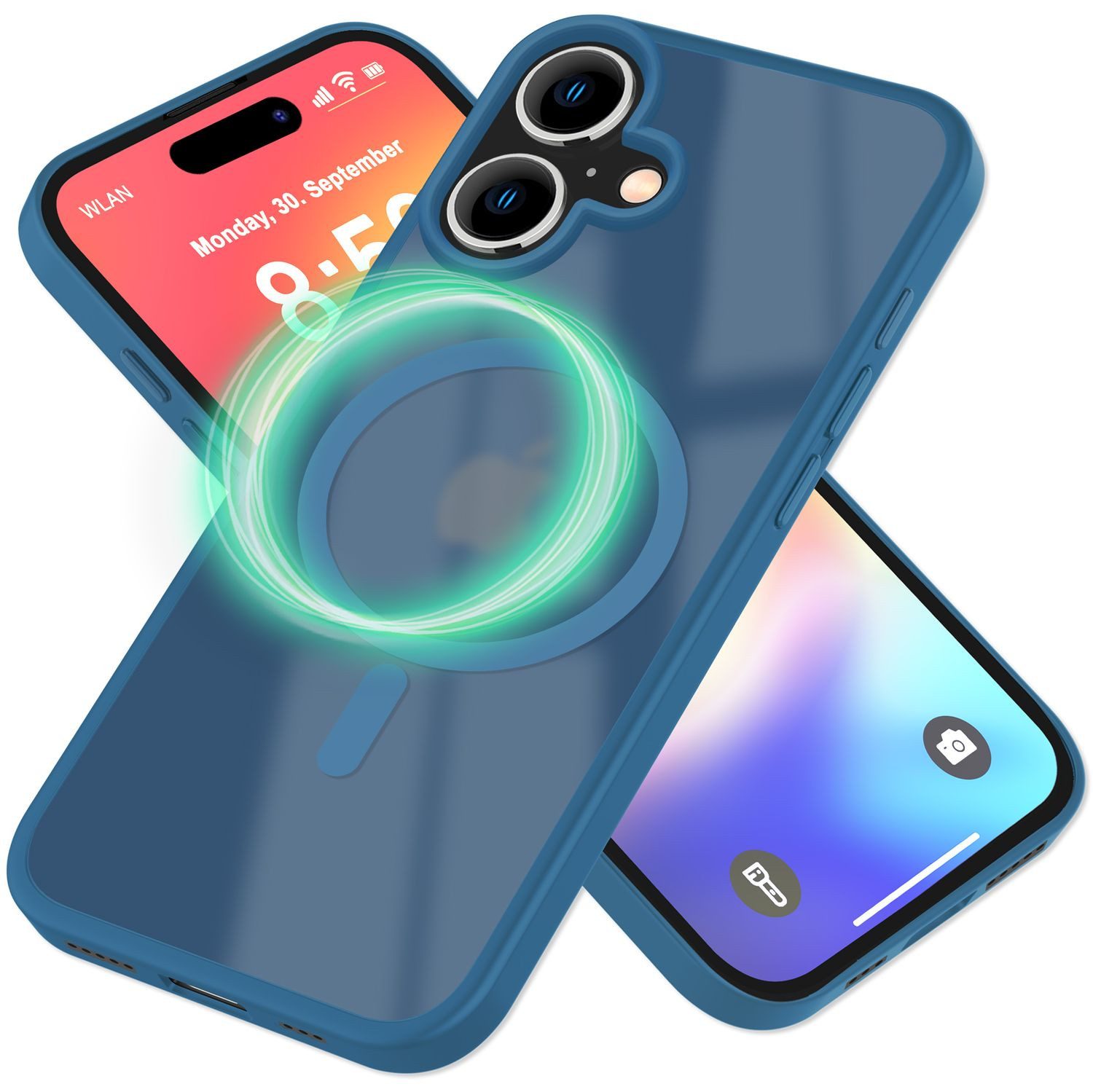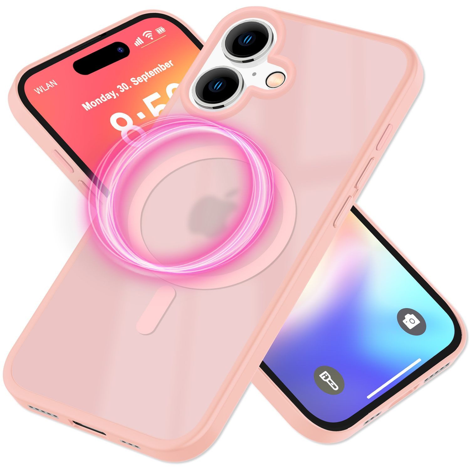 NALIA MagPower Matt-Klar Case kompatibel mit iPhone 16 Hülle [kompatibel mit MagSafe], Semi-Transparent Hybrid Cover Halb-Durchsichtig, Harte Rückseite & Silikon Rahmen, Dünn Slim