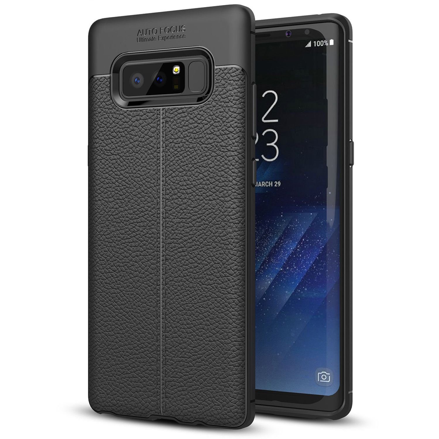 Samsung Galaxy Note 8 Hülle Leder-Look Handyhülle von NALIA, Ultra Slim Silikon Case Cover, Dünne Phone Schutzhülle, Etui Handy-Tasche Back-Cover Bumper, TPU Gummihülle für Samsung Note 8 - Schwarz